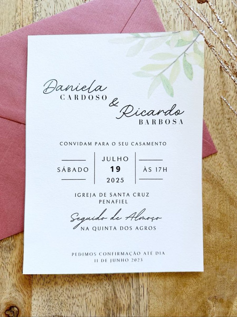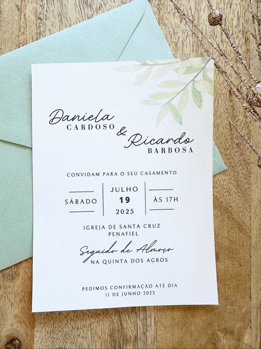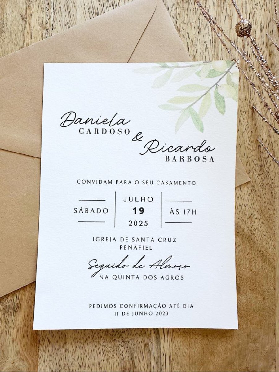 Convite de Casamento Oliveira – Este convite de casamento é o primeiro passo perfeito para anunciar o dia do teu casamento!
