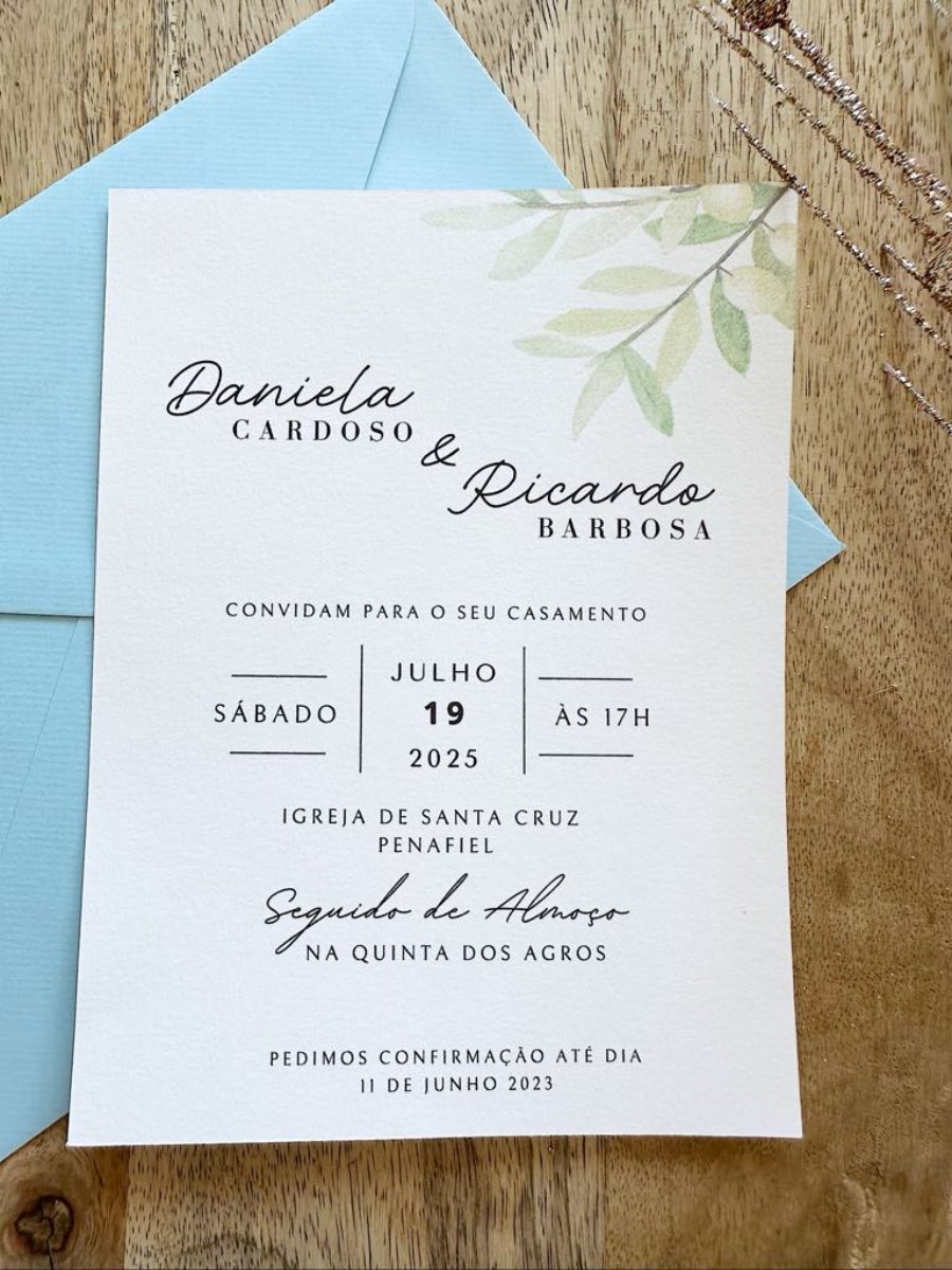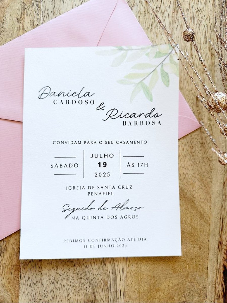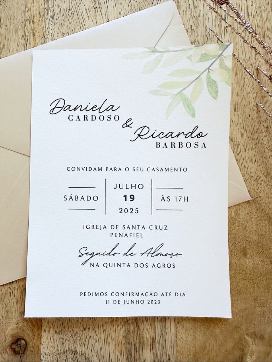 Convite de Casamento Oliveira – Este convite de casamento é o primeiro passo perfeito para anunciar o dia do teu casamento!