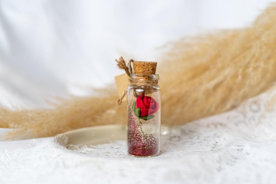 Frasco Com Rosa Vermelha como Lembrança de Casamento