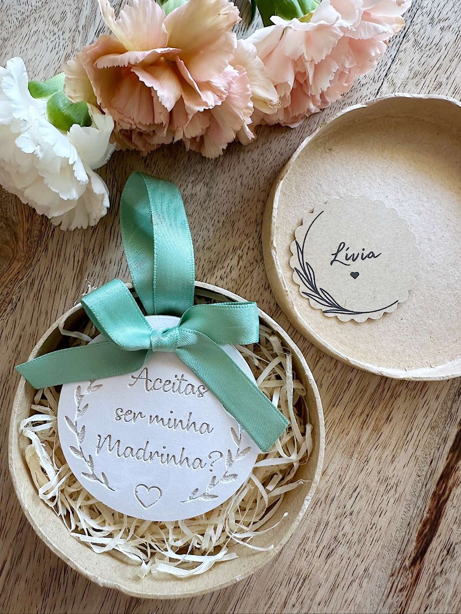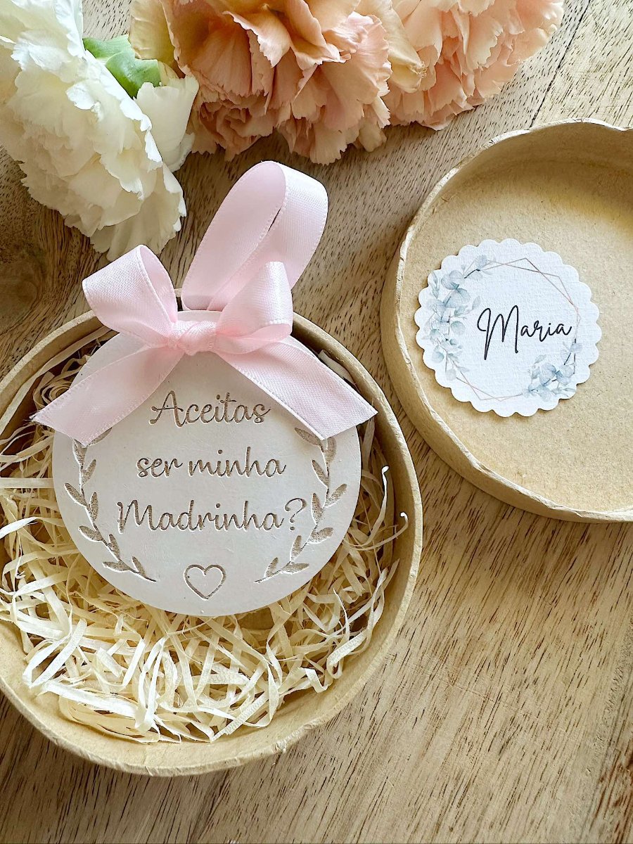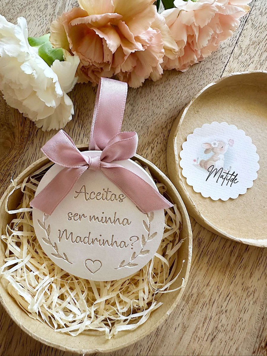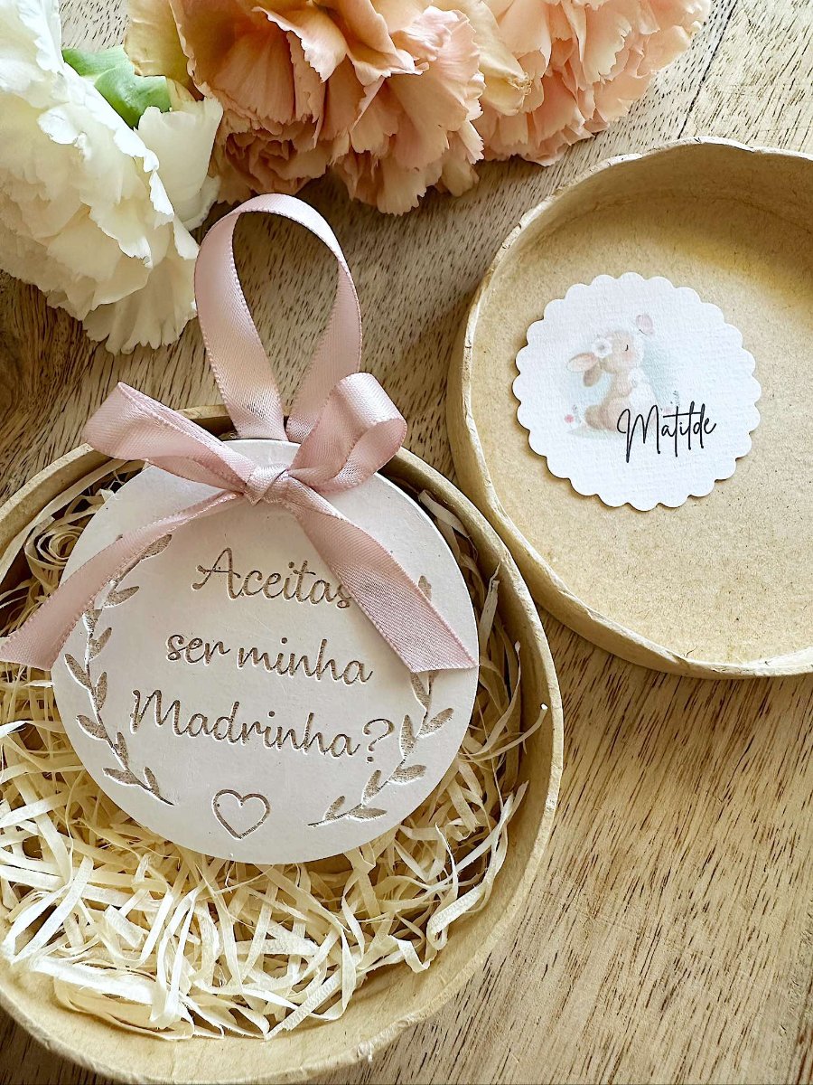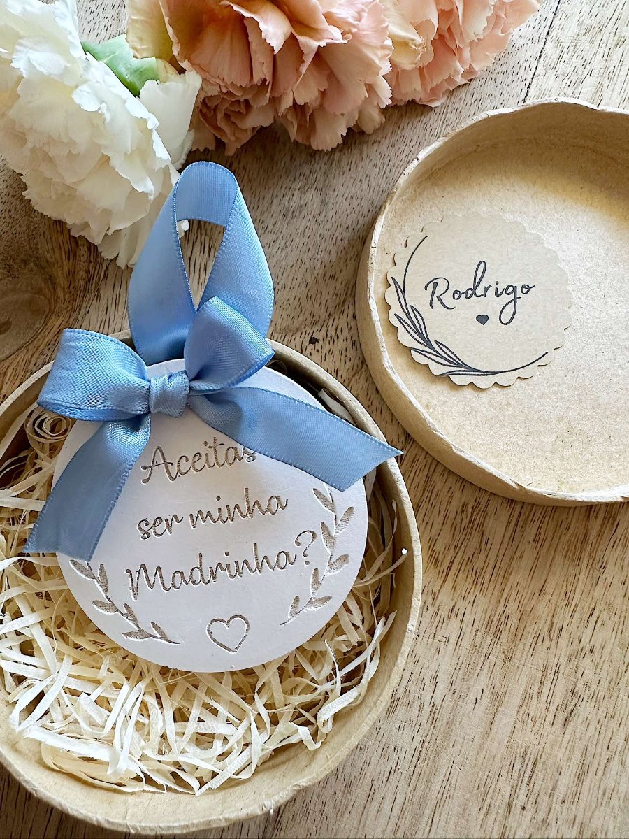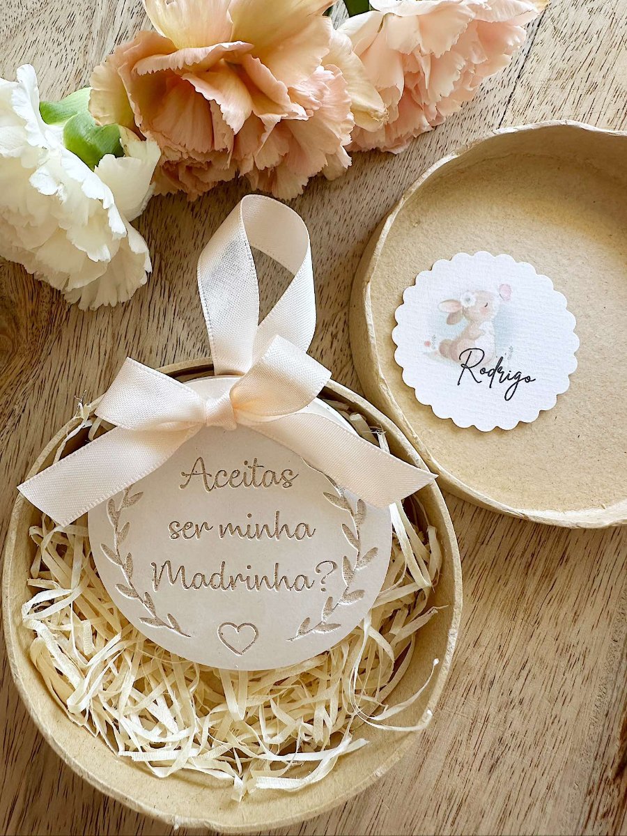 Surpreenda a futura madrinha com um gesto simples mas cheio de emoção: um convite especial que ficará guardado como recordação para toda a vida.