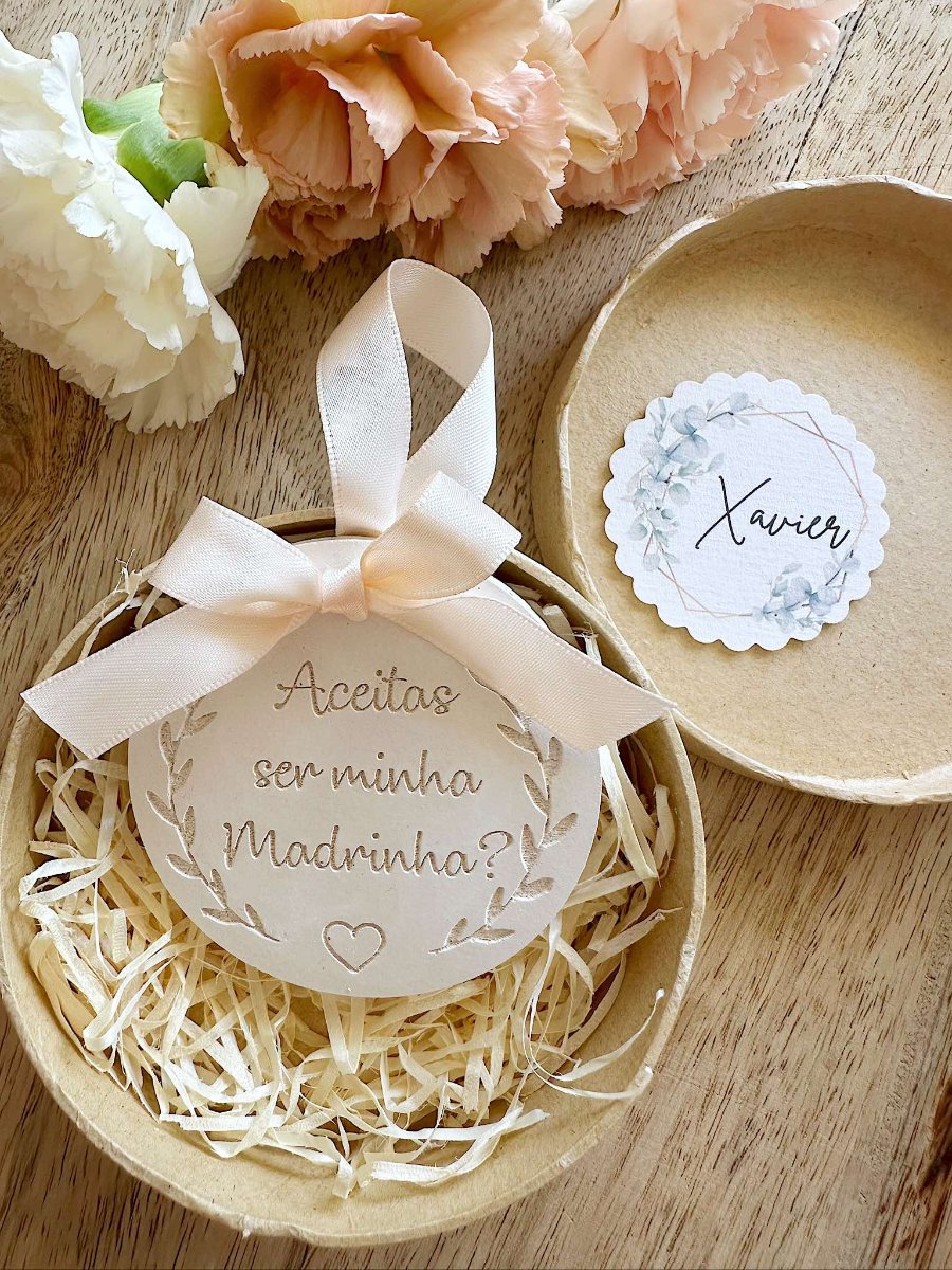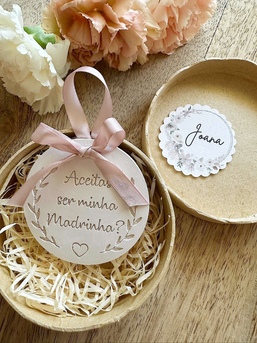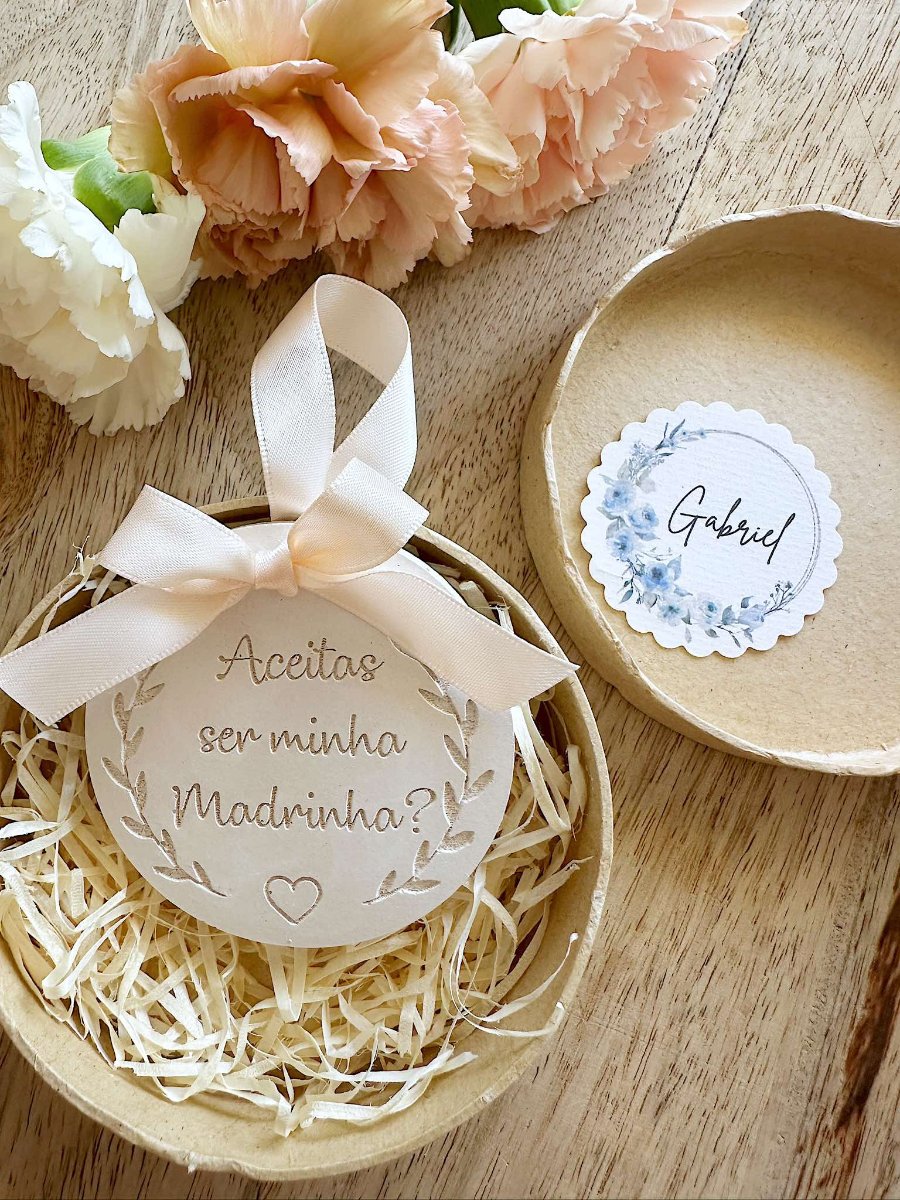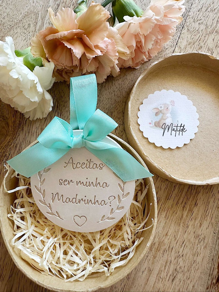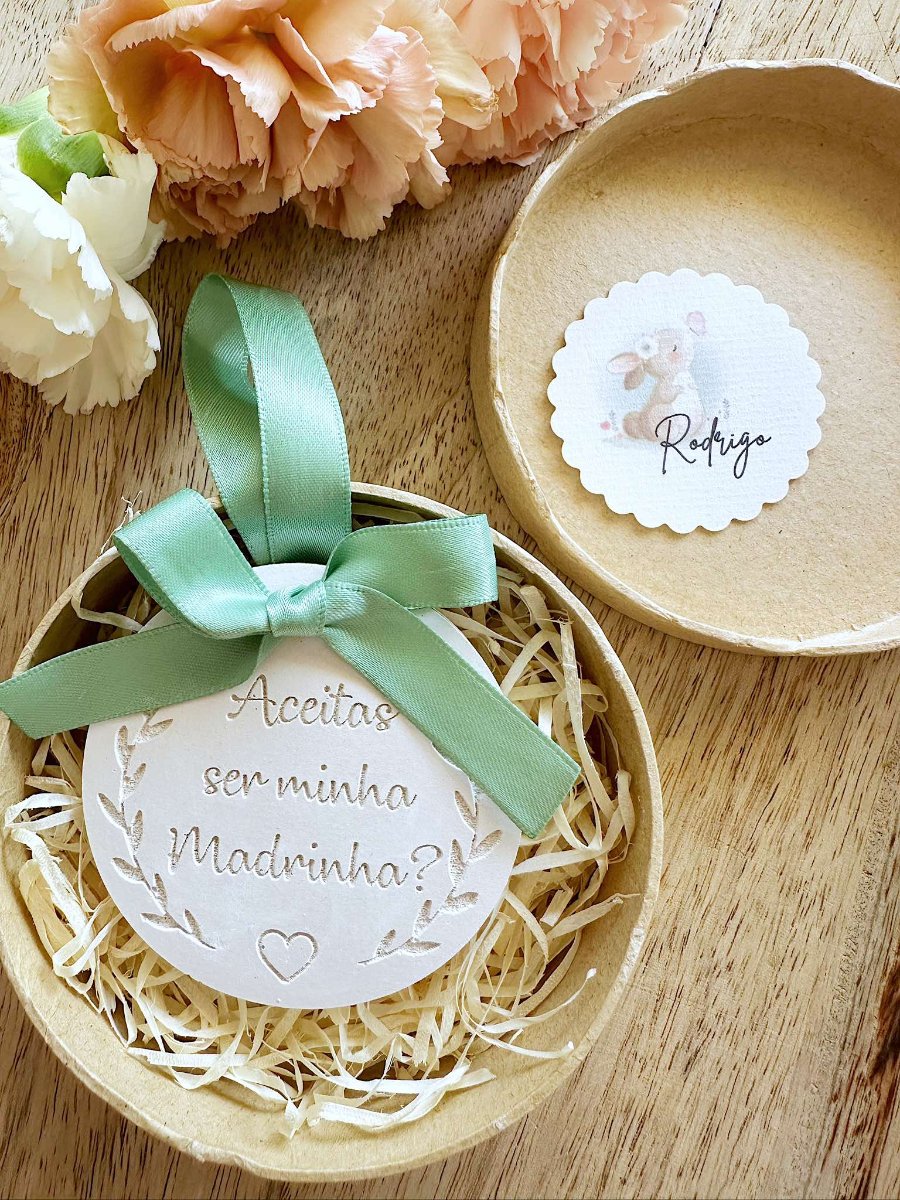 Surpreenda a futura madrinha com um gesto simples mas cheio de emoção: um convite especial que ficará guardado como recordação para toda a vida.