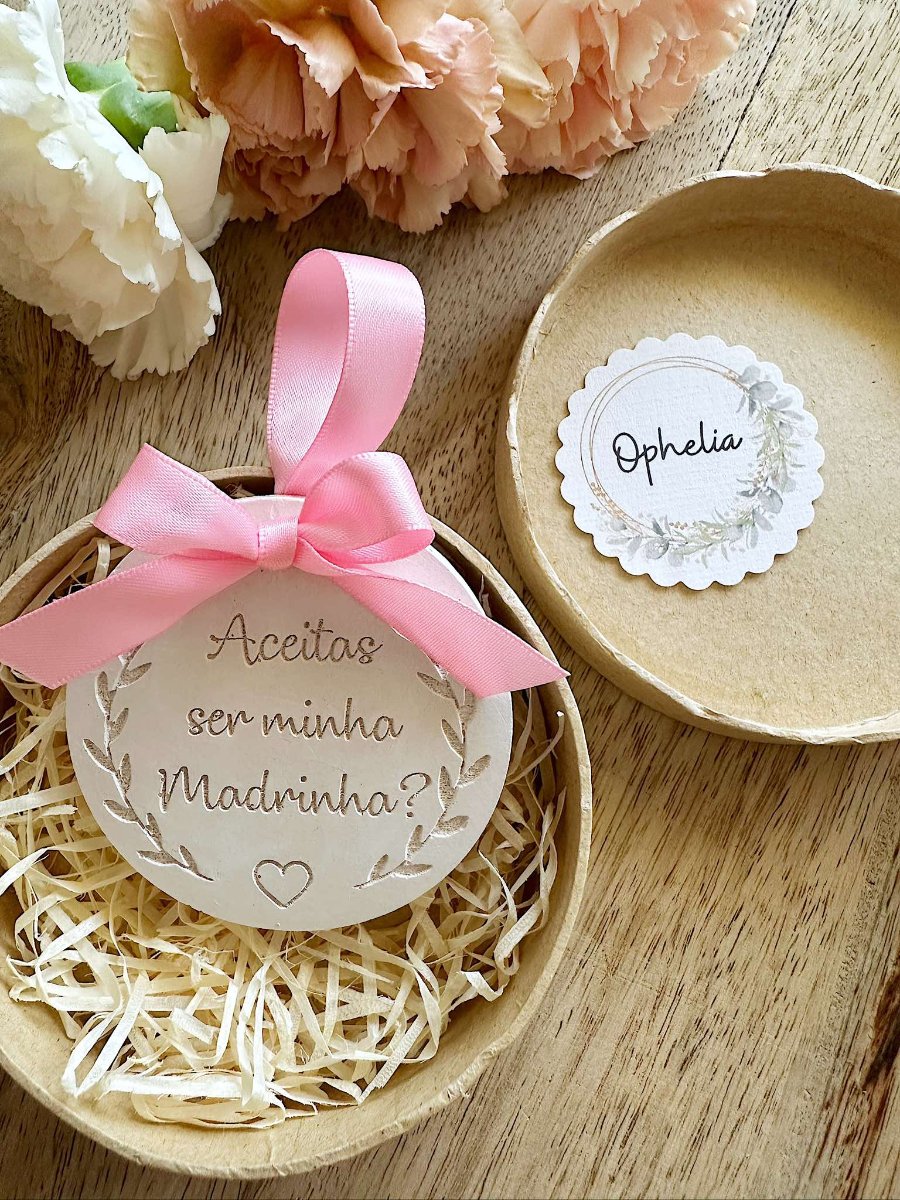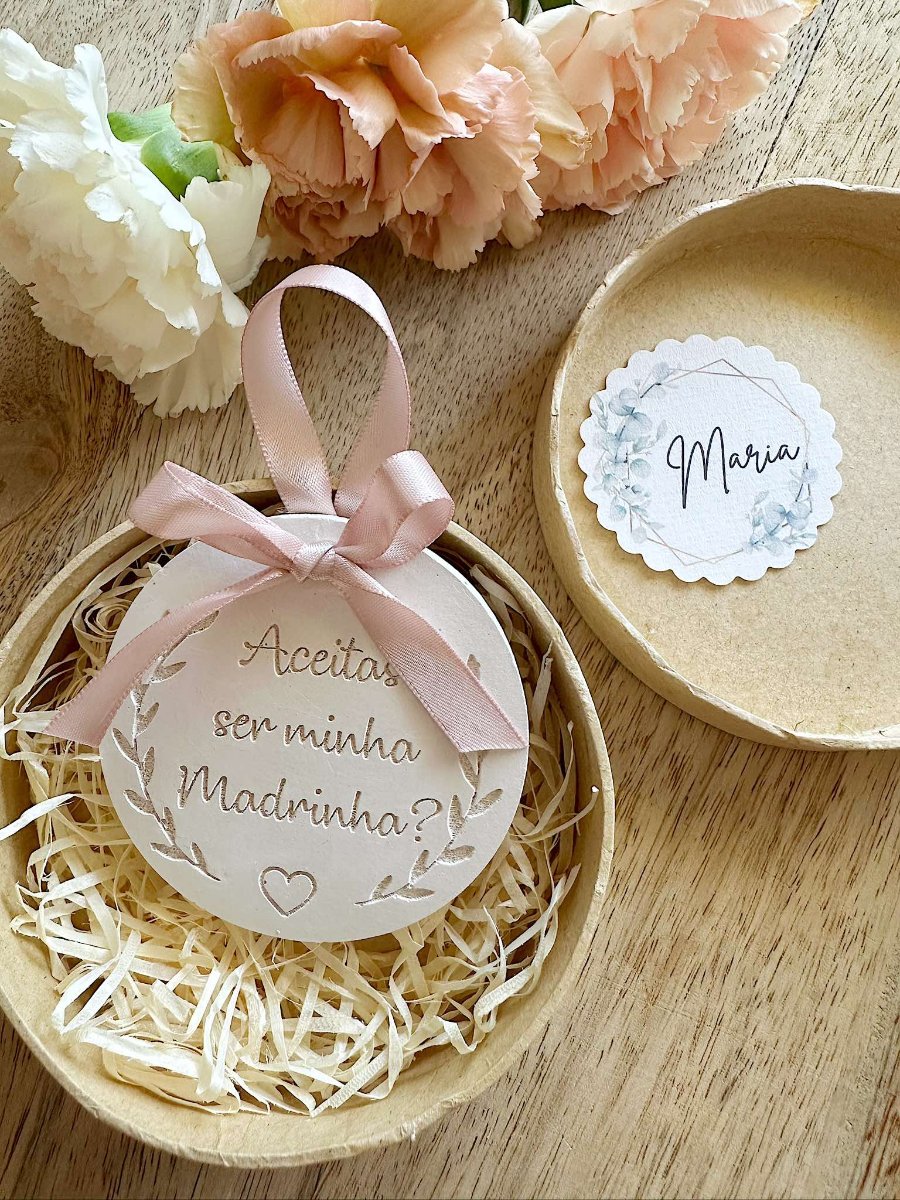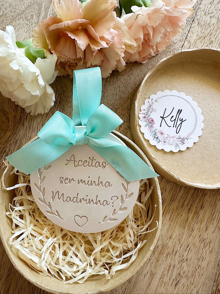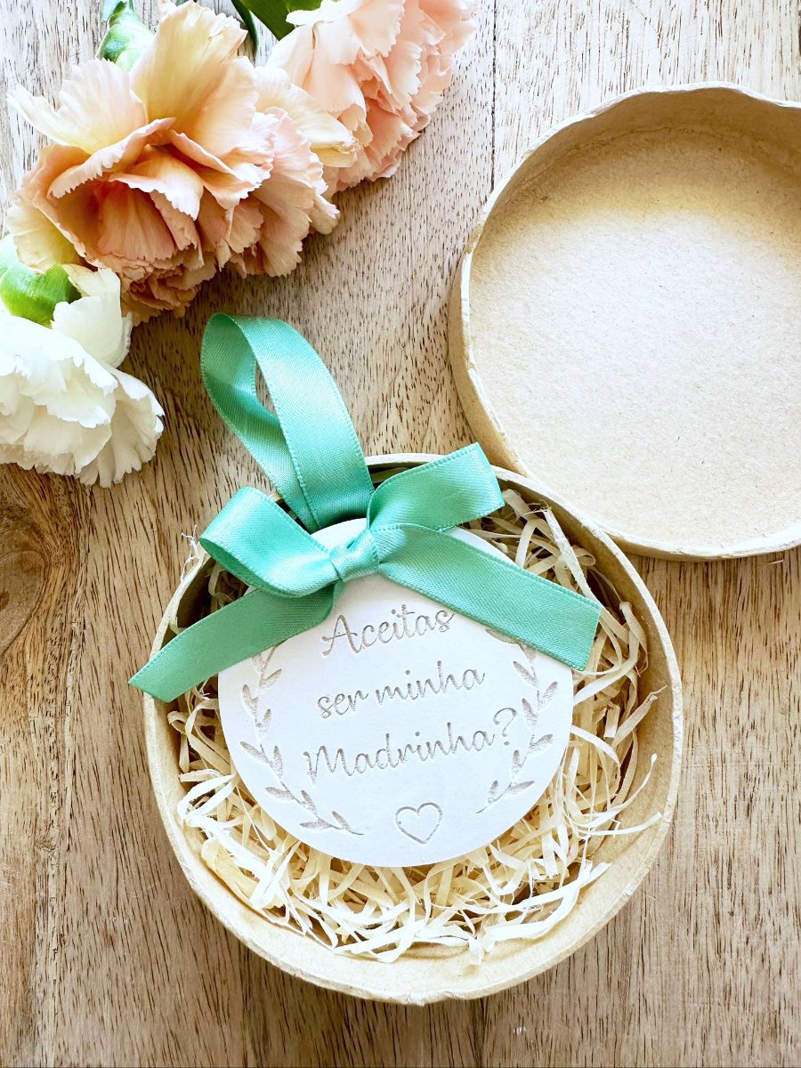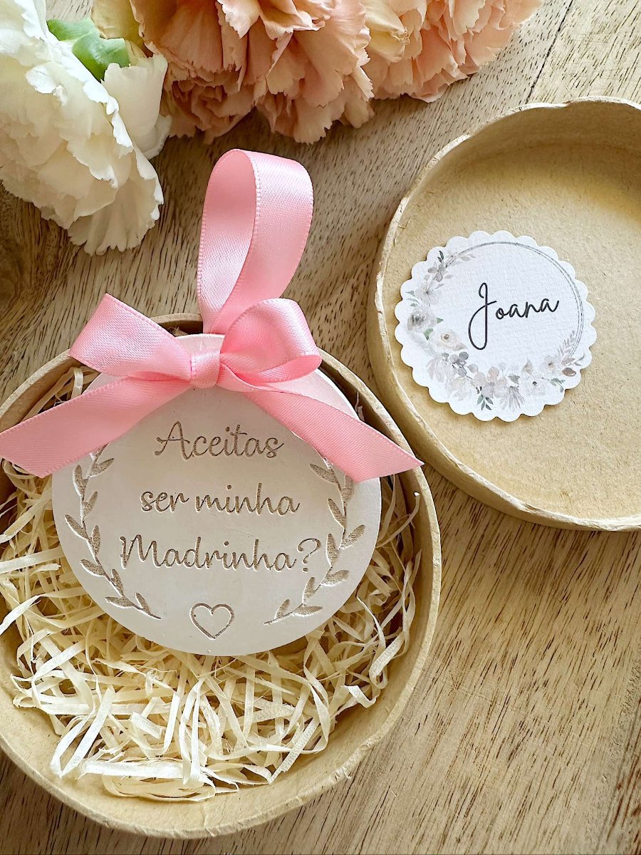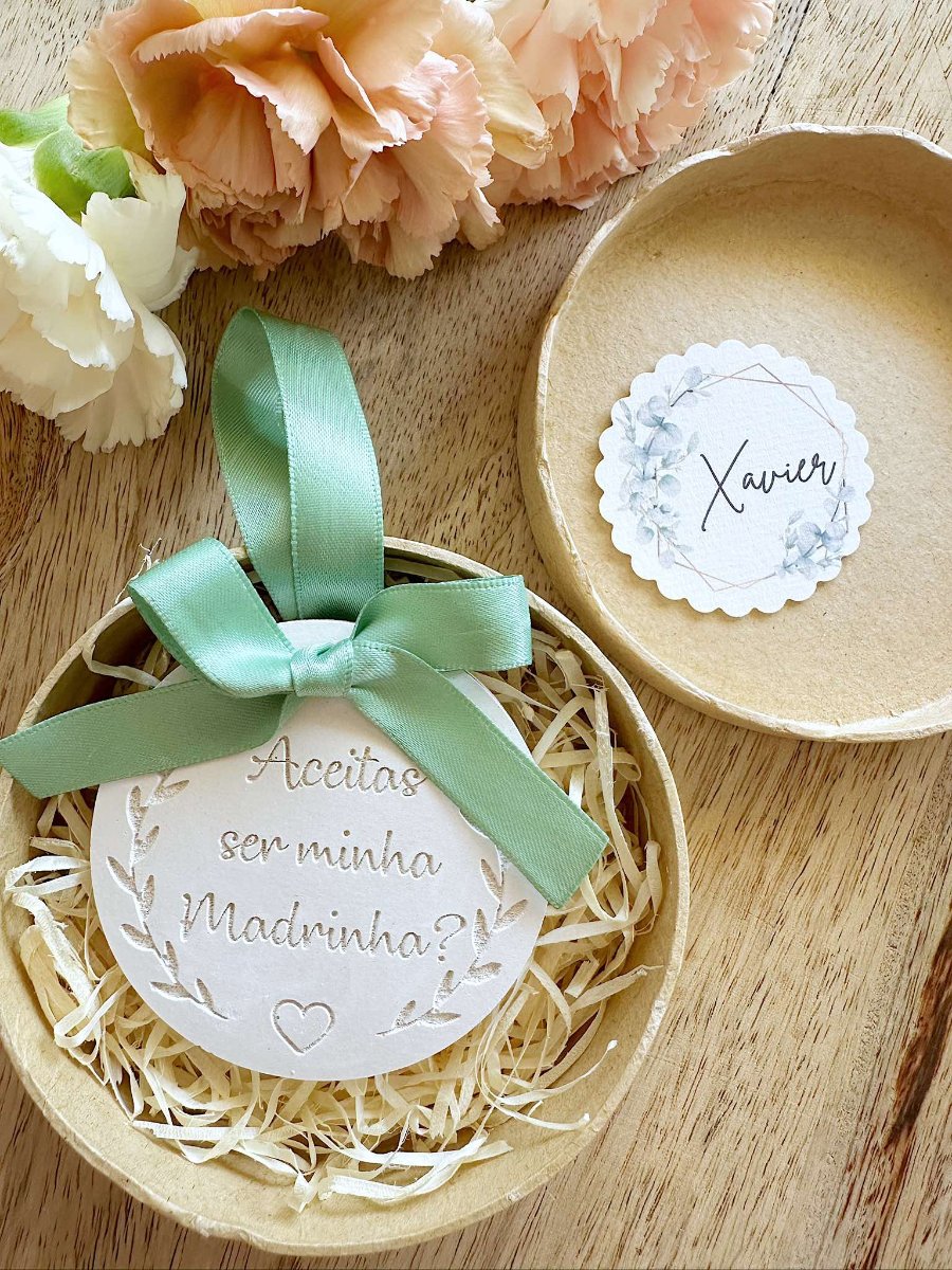 Surpreenda a futura madrinha com um gesto simples mas cheio de emoção: um convite especial que ficará guardado como recordação para toda a vida.