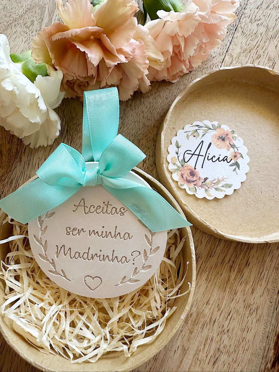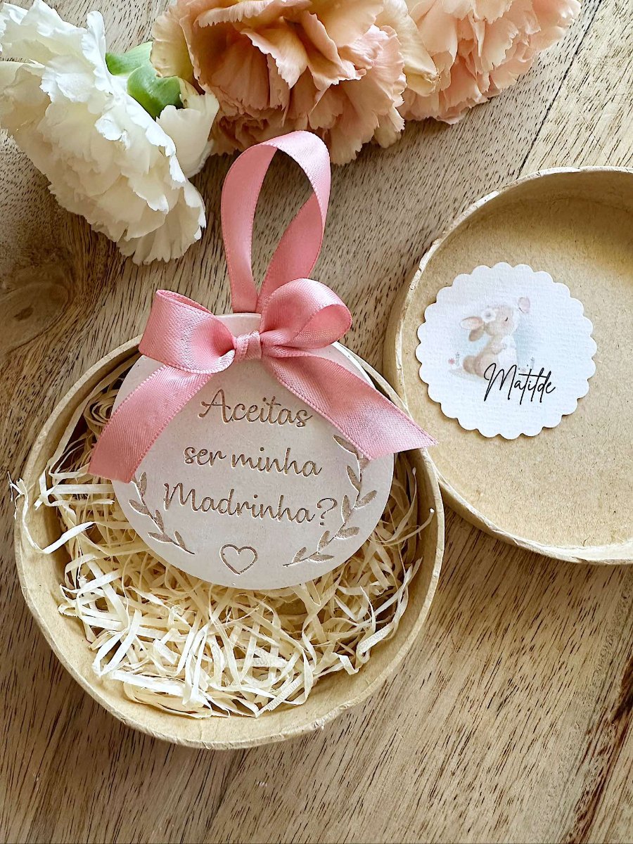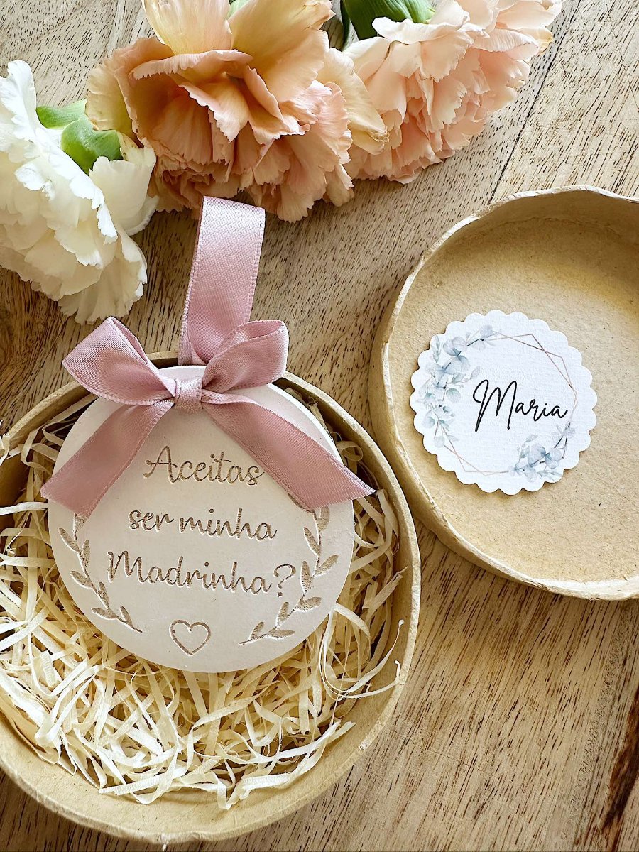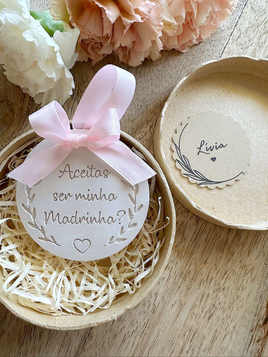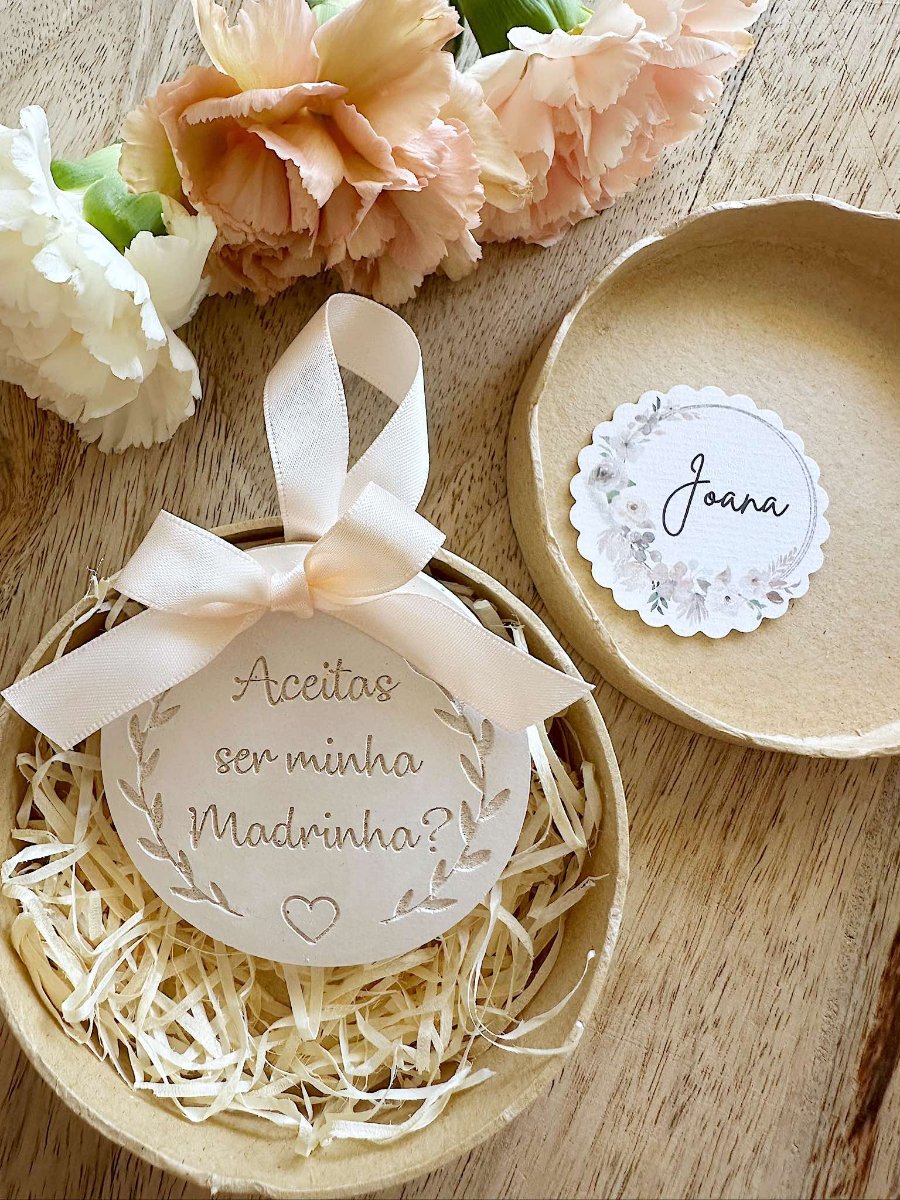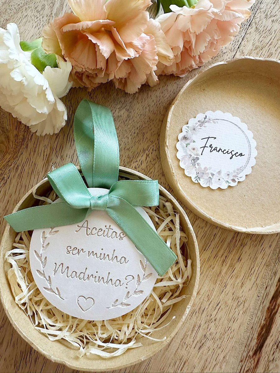 Surpreenda a futura madrinha com um gesto simples mas cheio de emoção: um convite especial que ficará guardado como recordação para toda a vida.