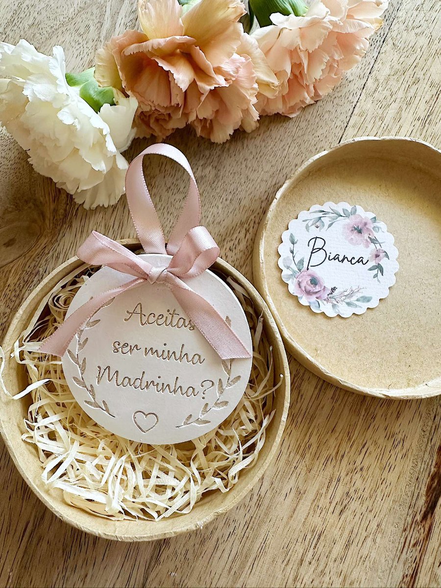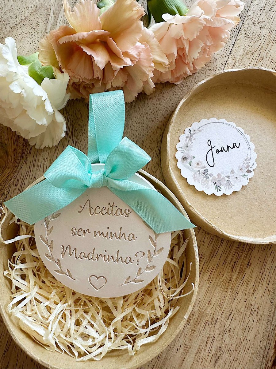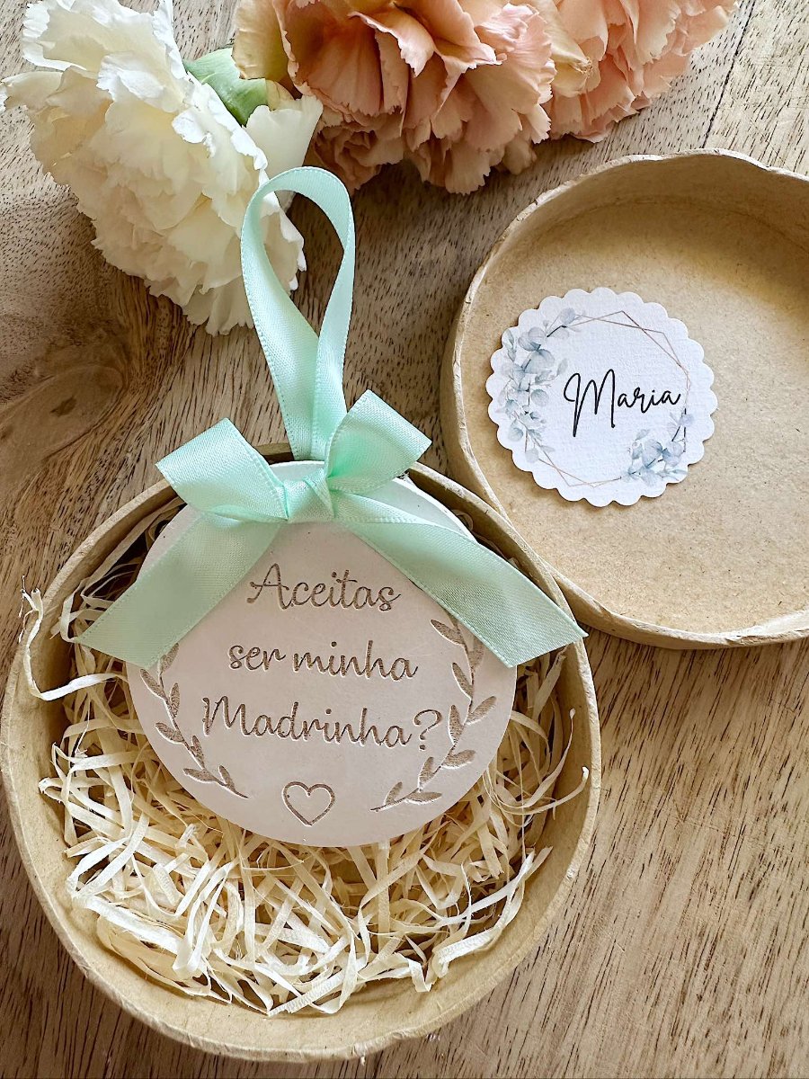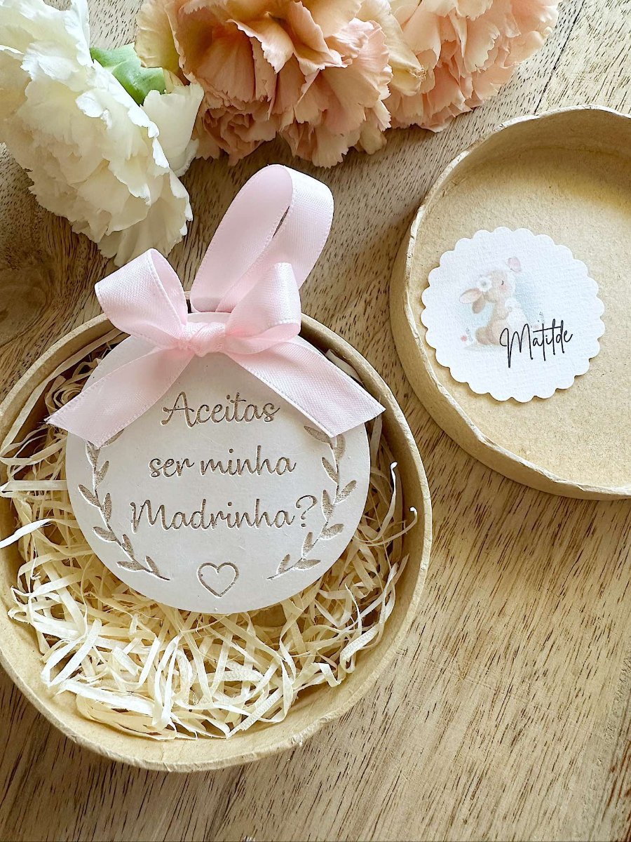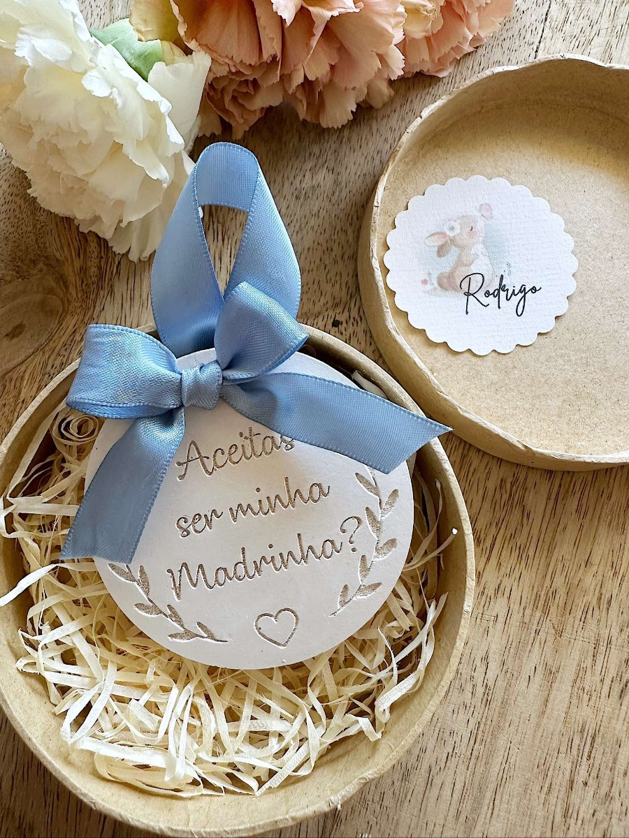 Surpreenda a futura madrinha com um gesto simples mas cheio de emoção: um convite especial que ficará guardado como recordação para toda a vida.