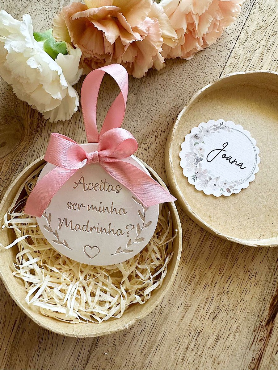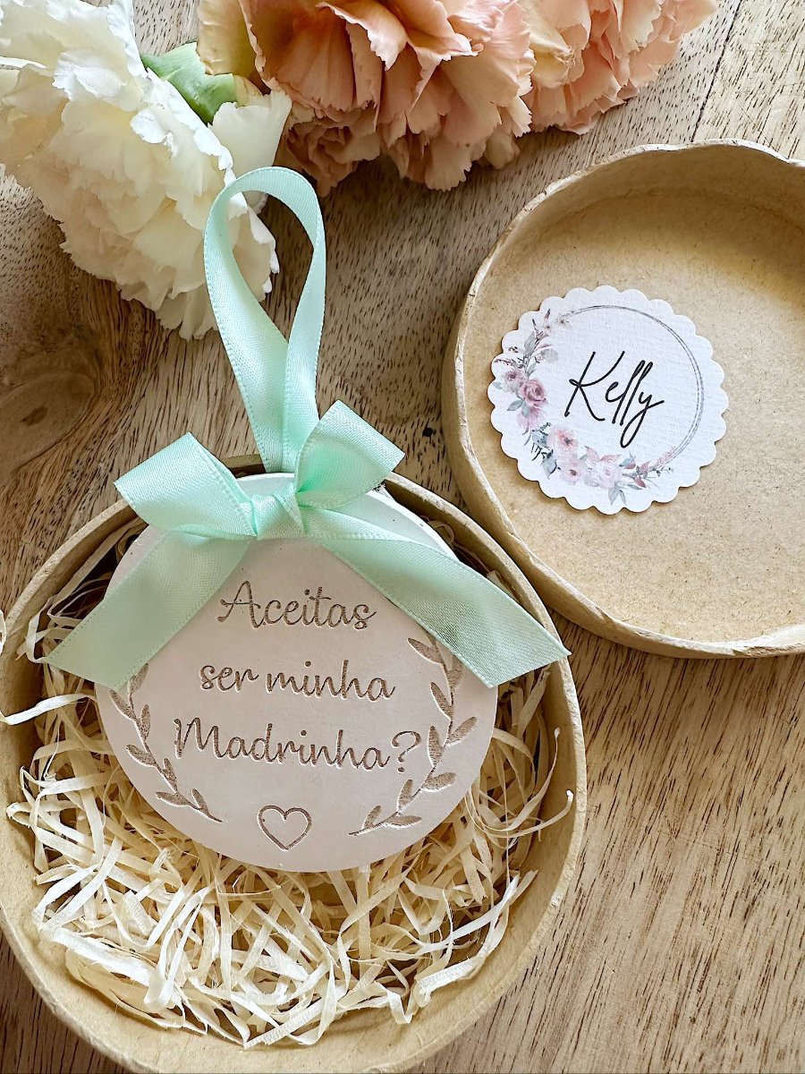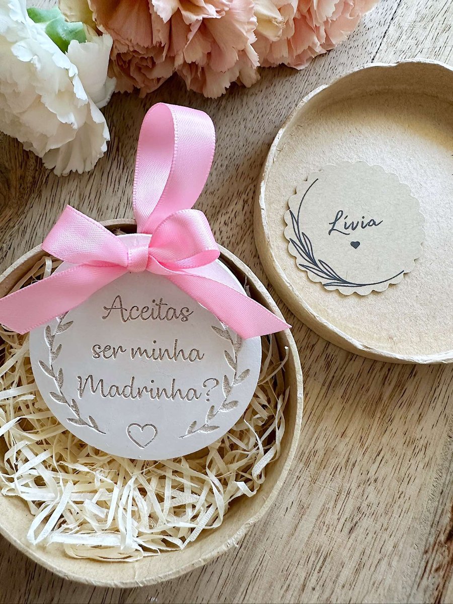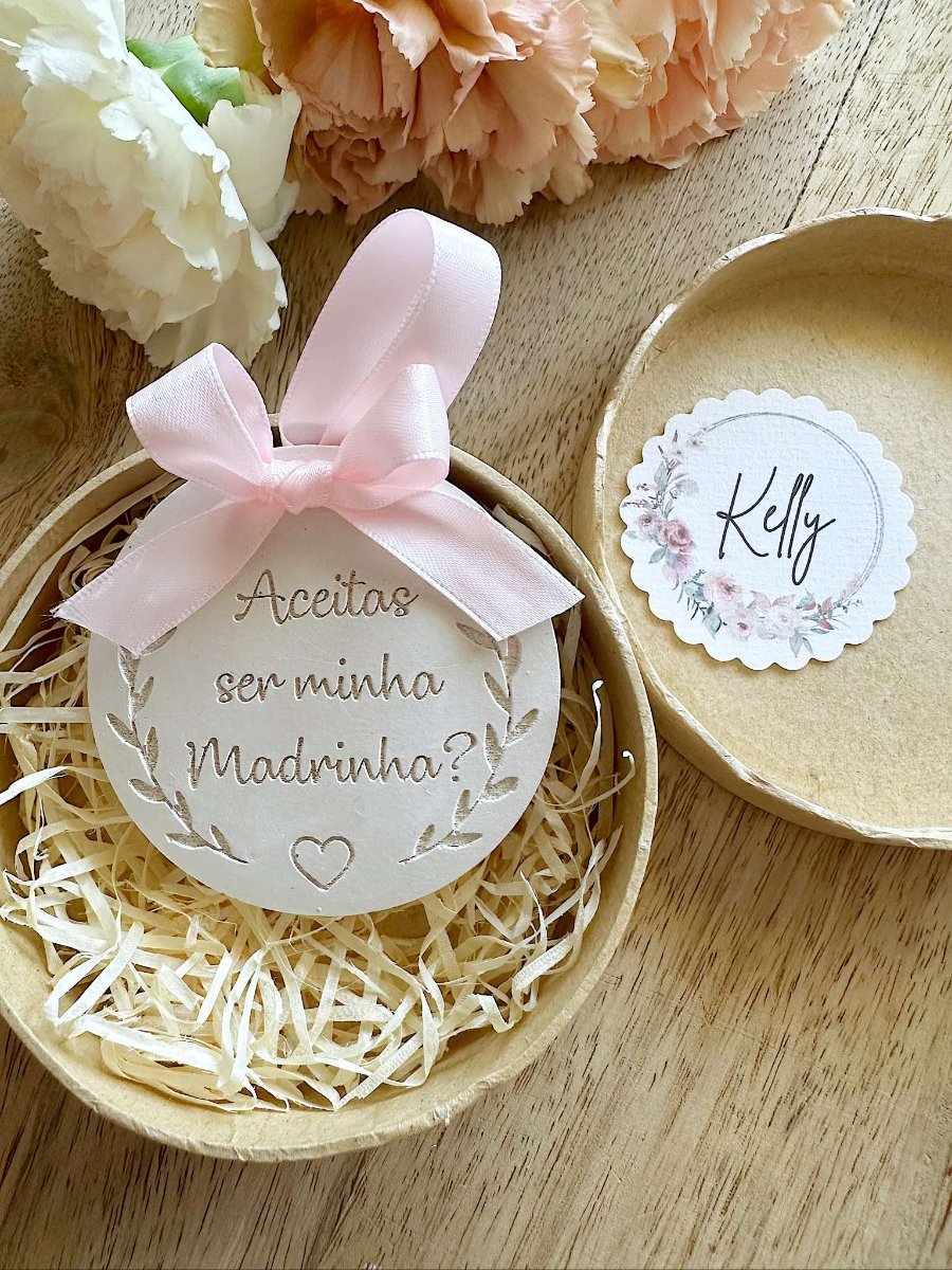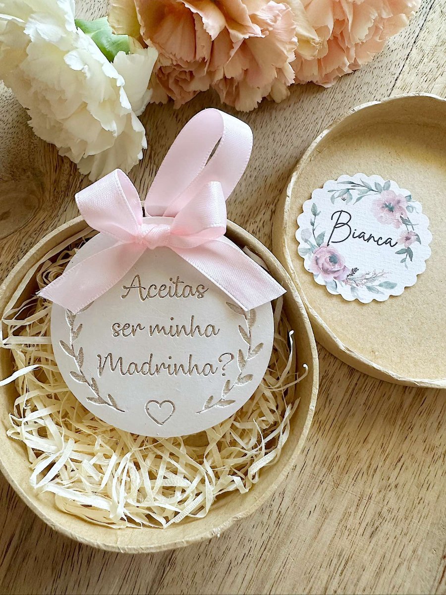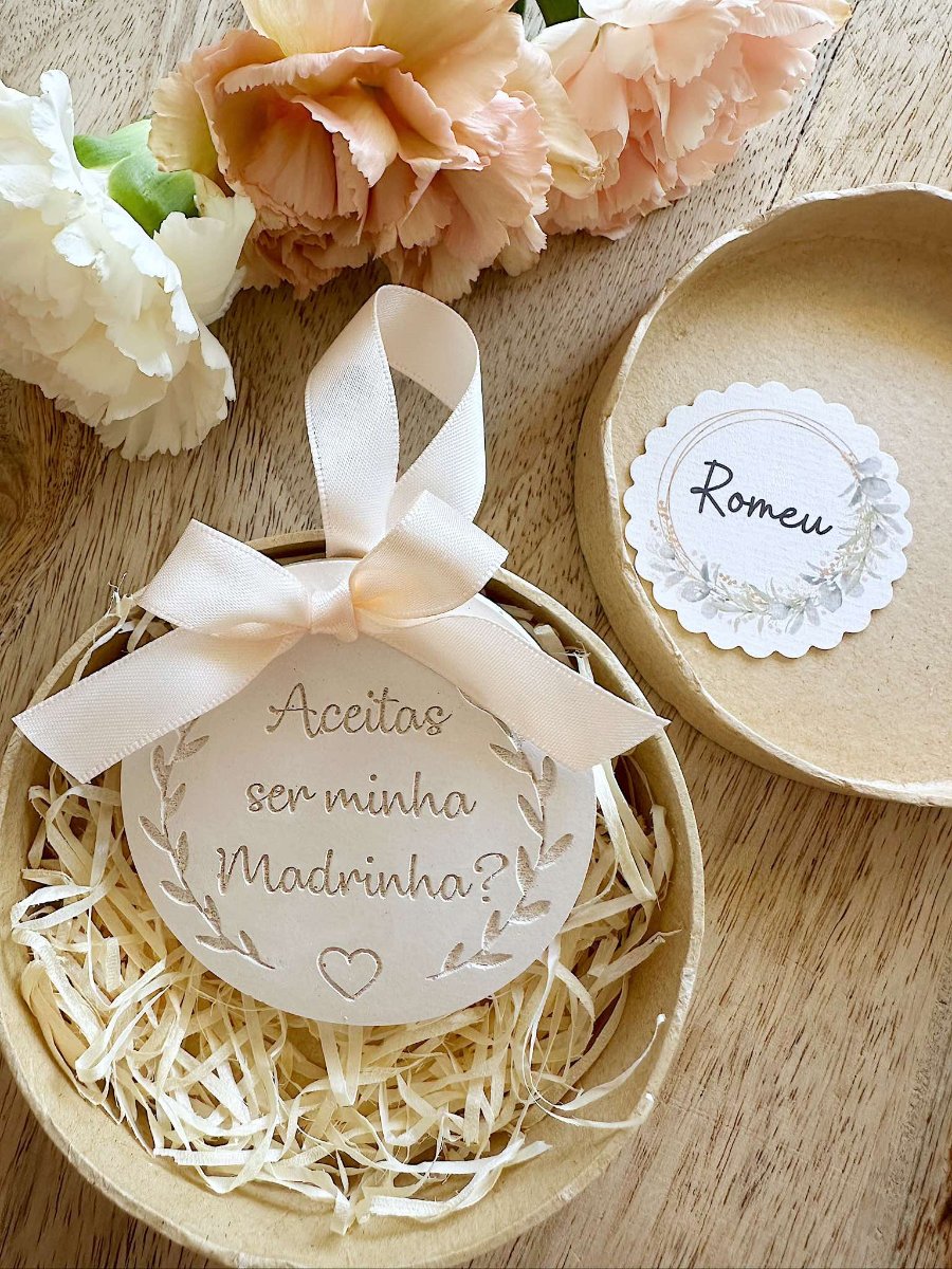Surpreenda a futura madrinha com um gesto simples mas cheio de emoção: um convite especial que ficará guardado como recordação para toda a vida.