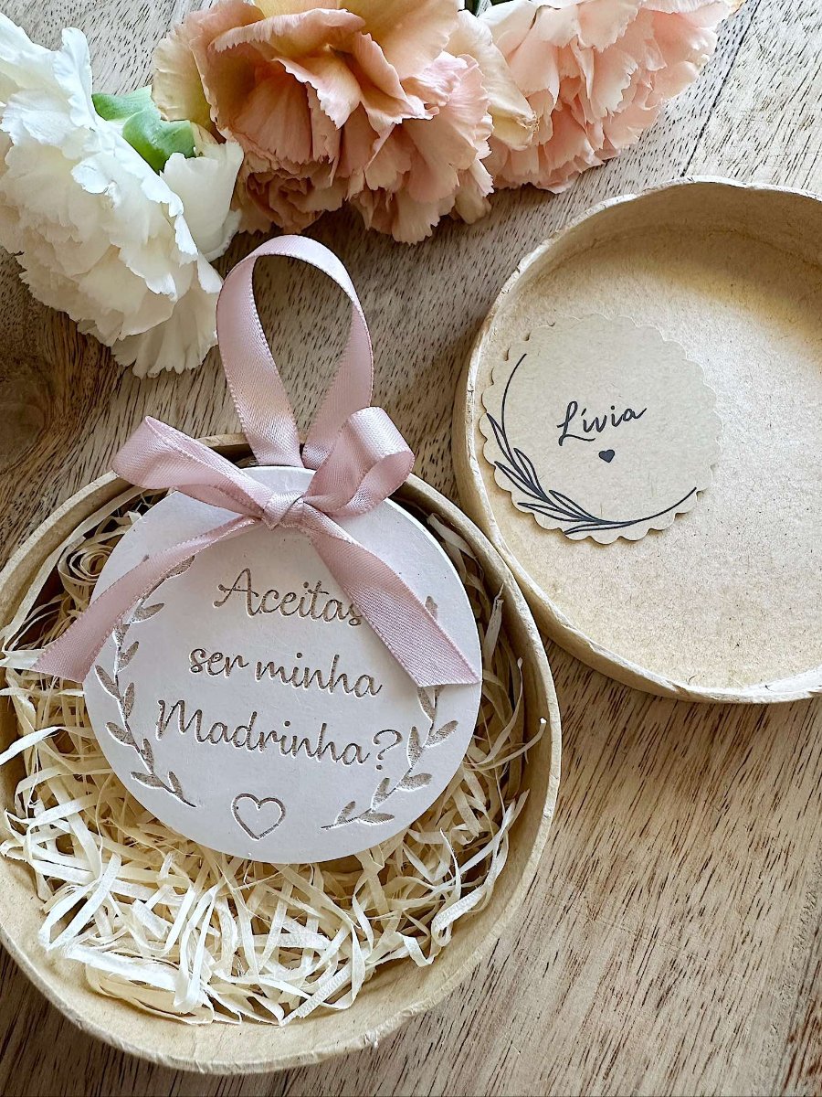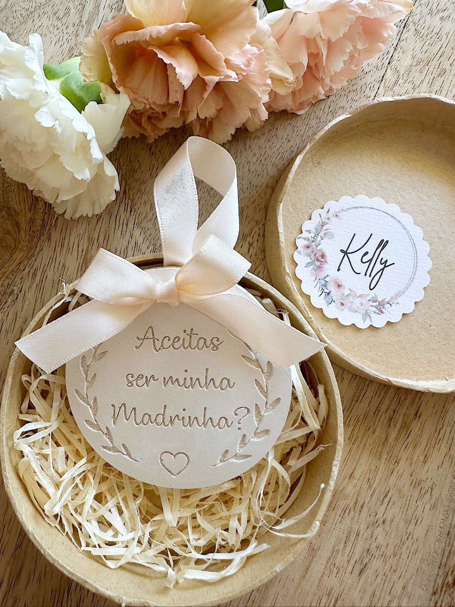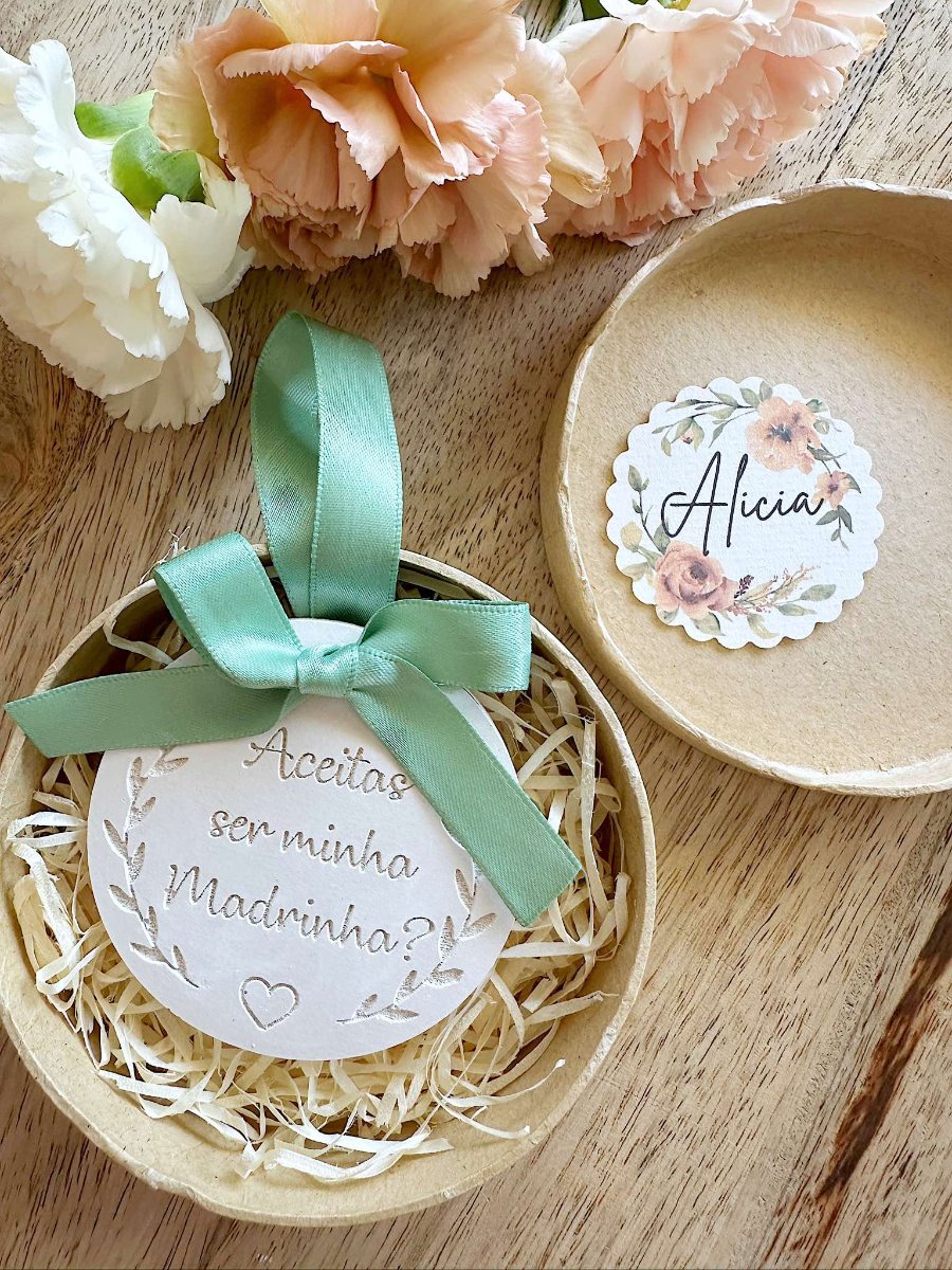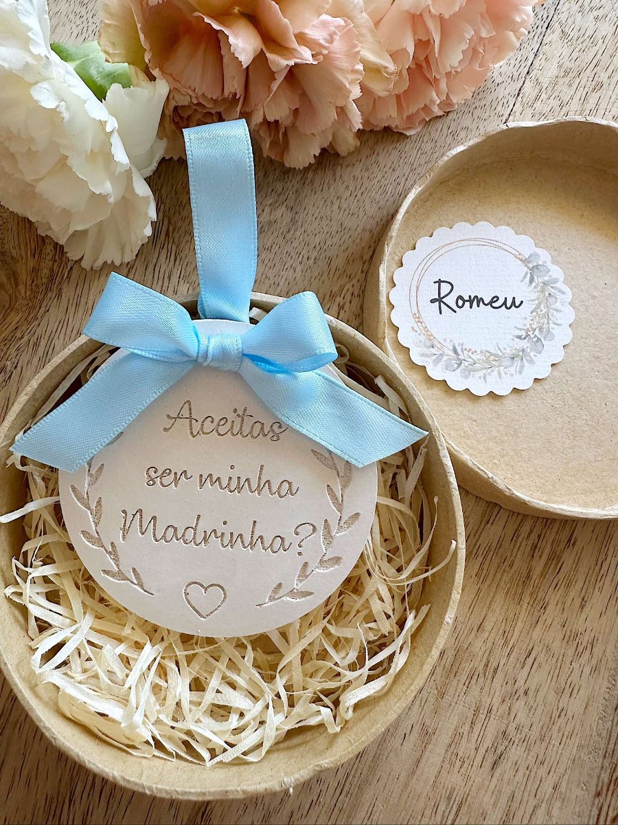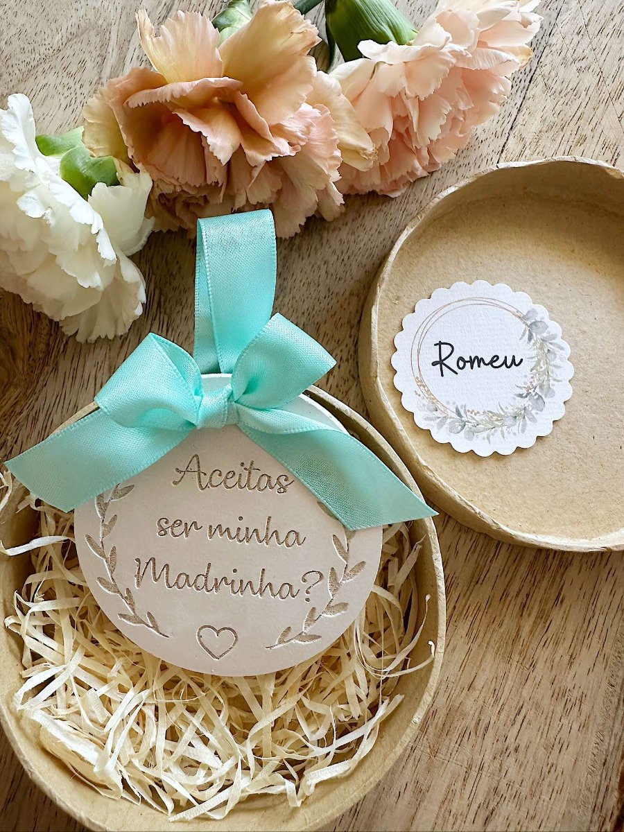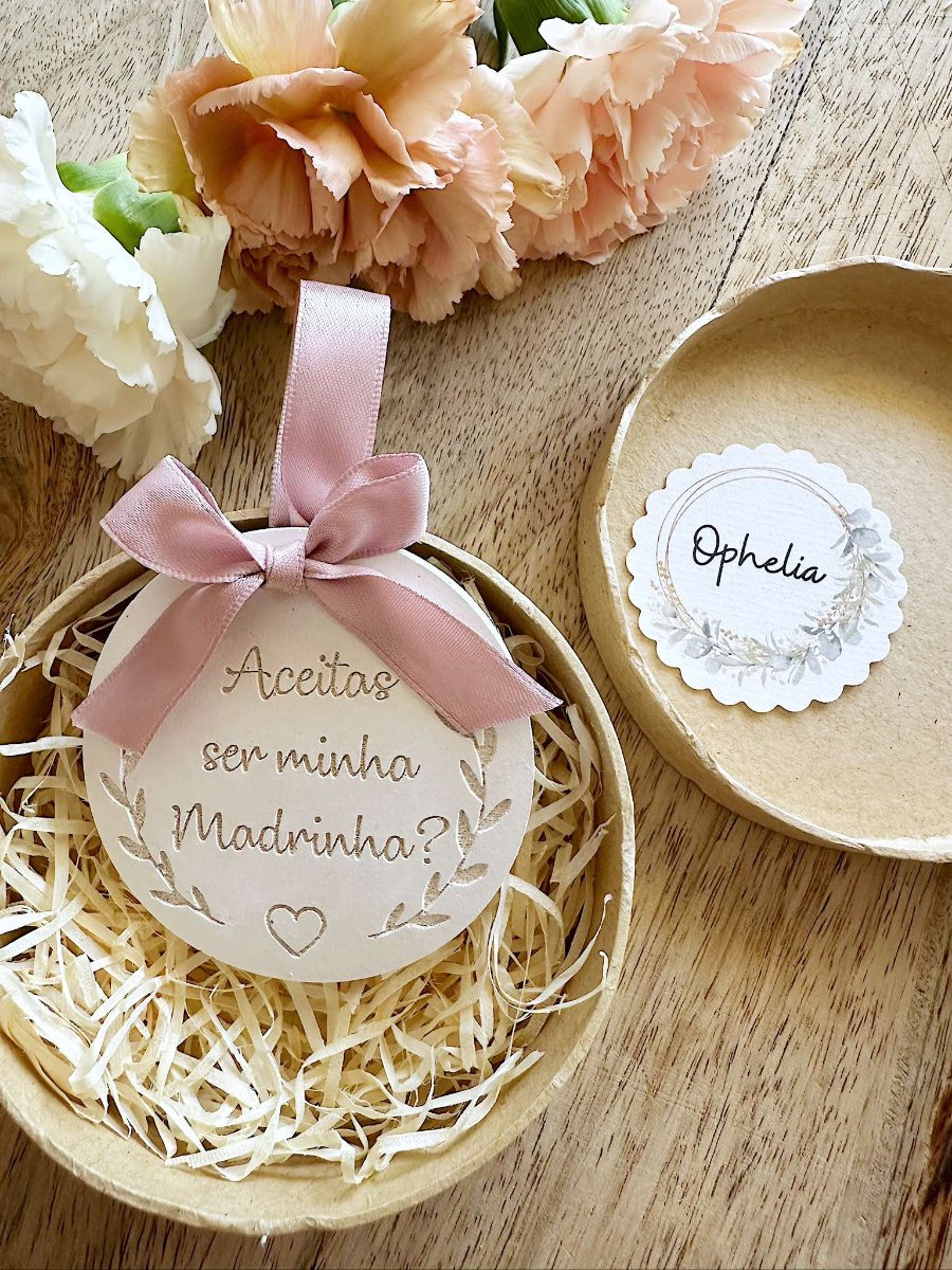 Surpreenda a futura madrinha com um gesto simples mas cheio de emoção: um convite especial que ficará guardado como recordação para toda a vida.