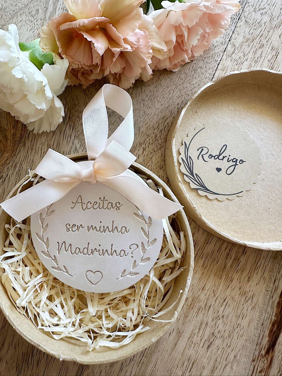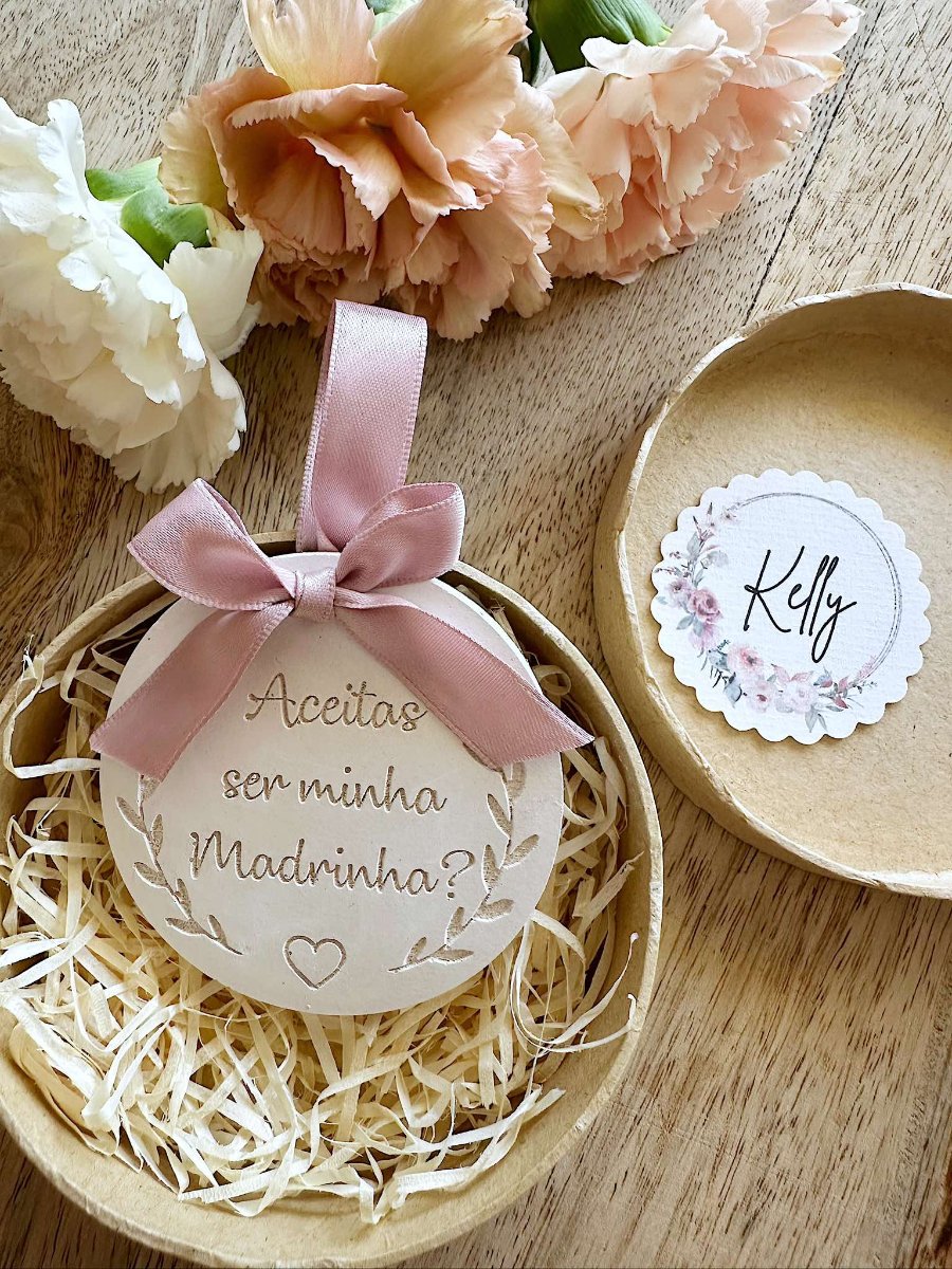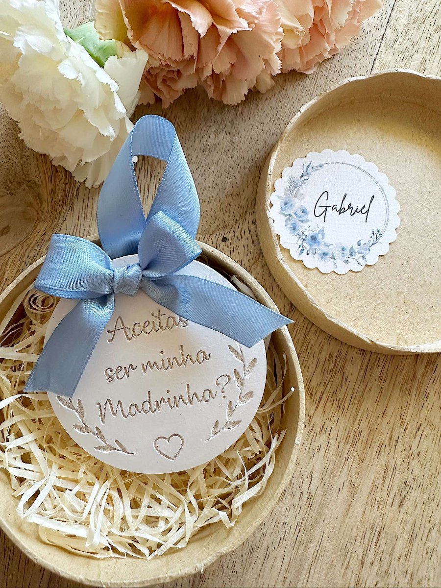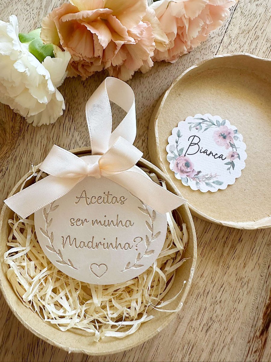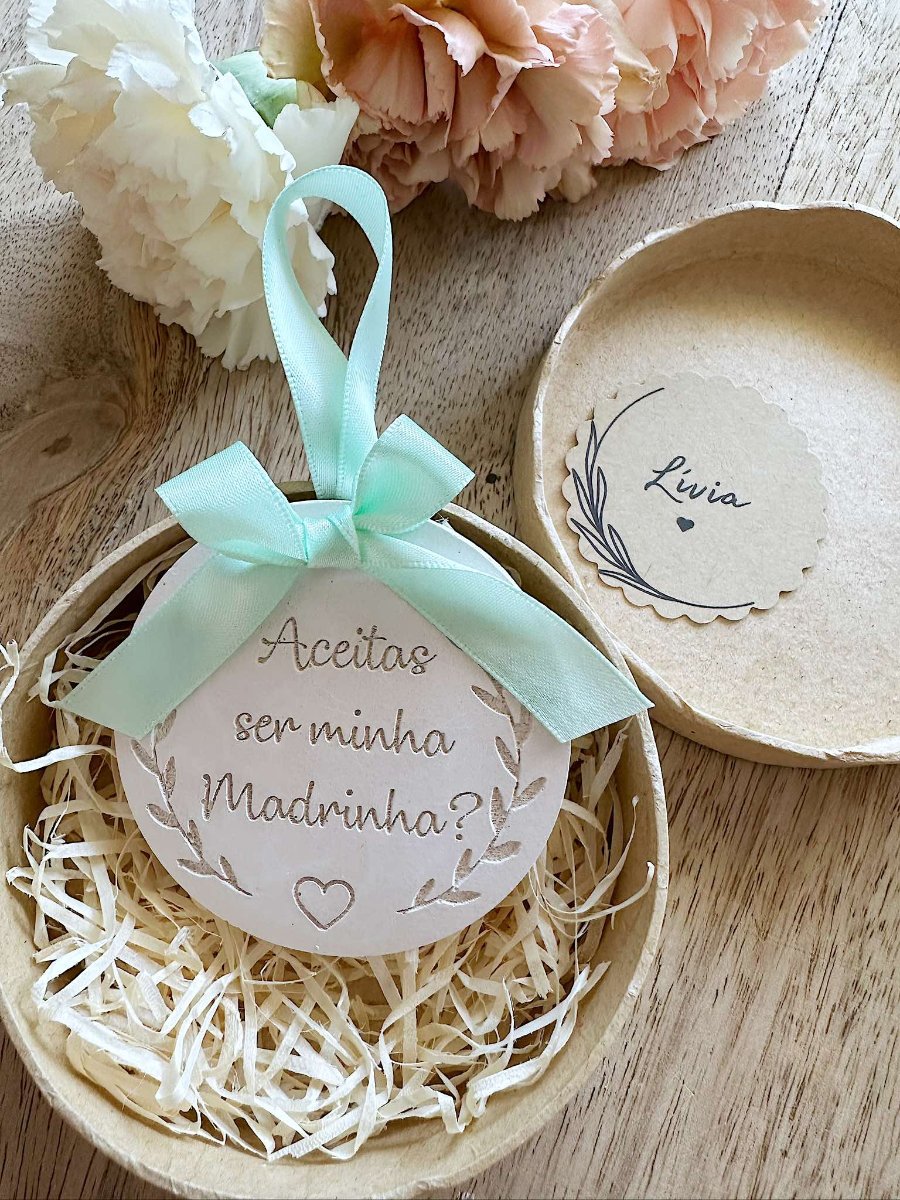 Surpreenda a futura madrinha com um gesto simples mas cheio de emoção: um convite especial que ficará guardado como recordação para toda a vida.