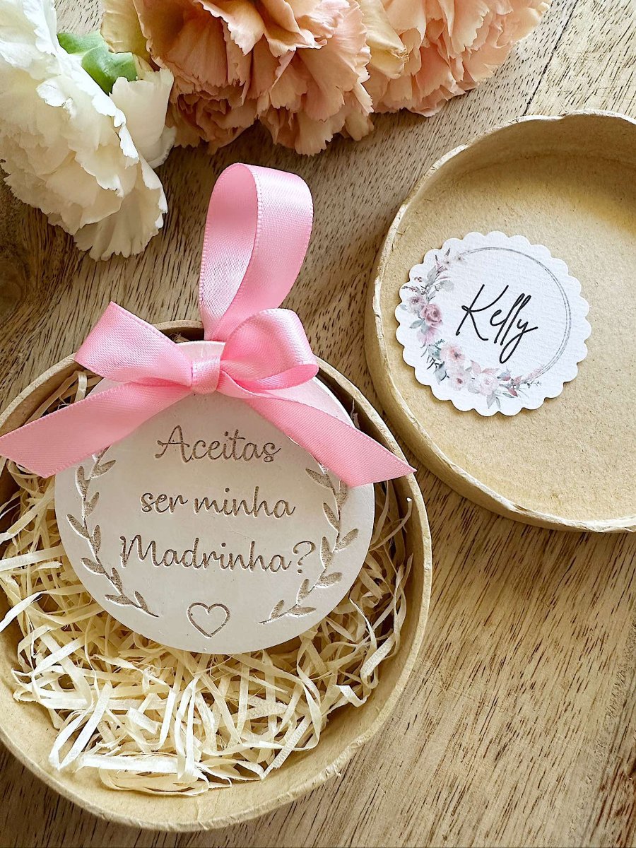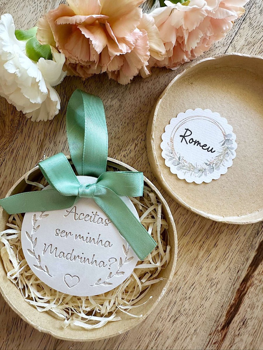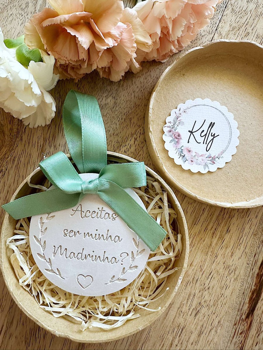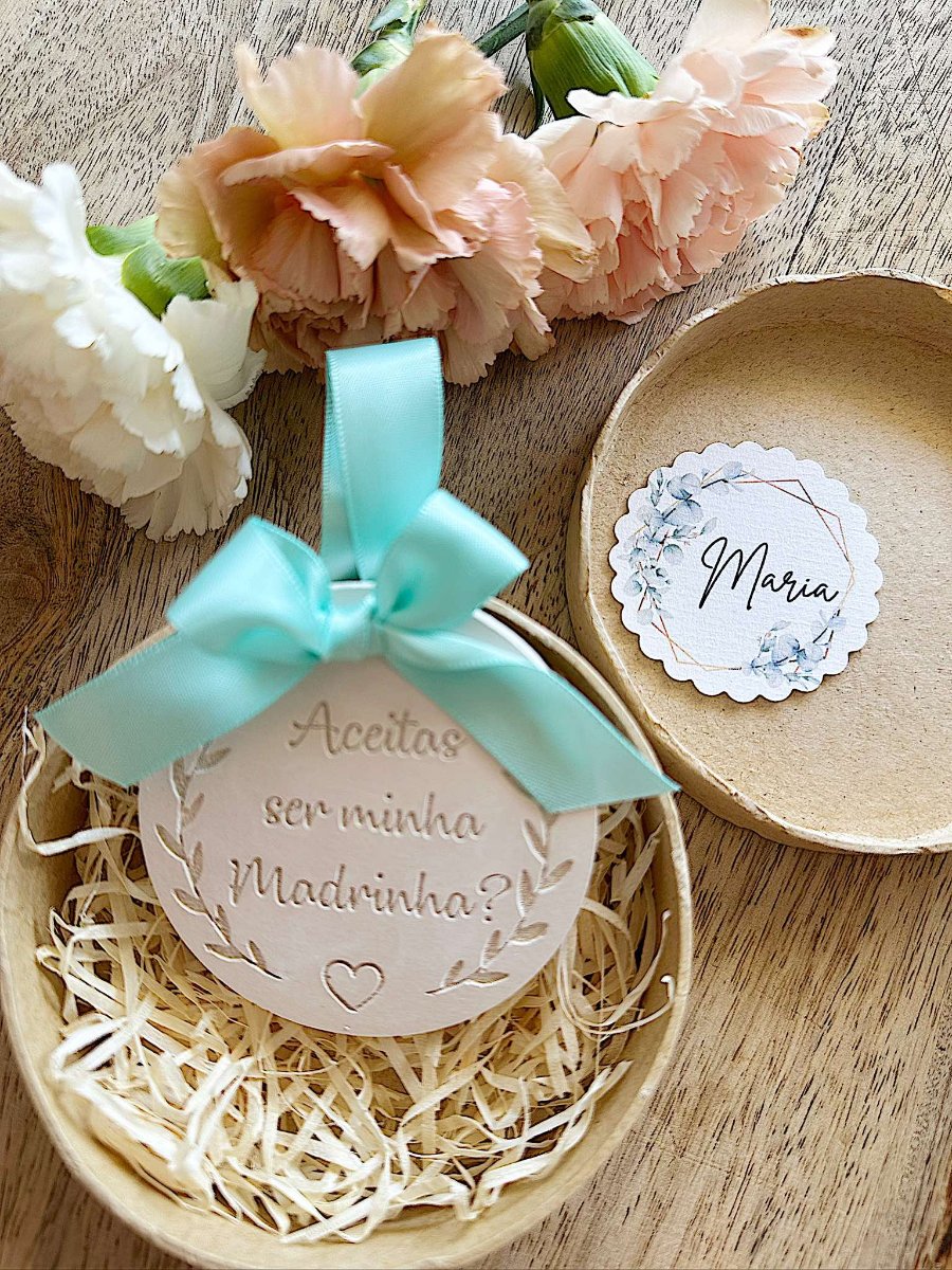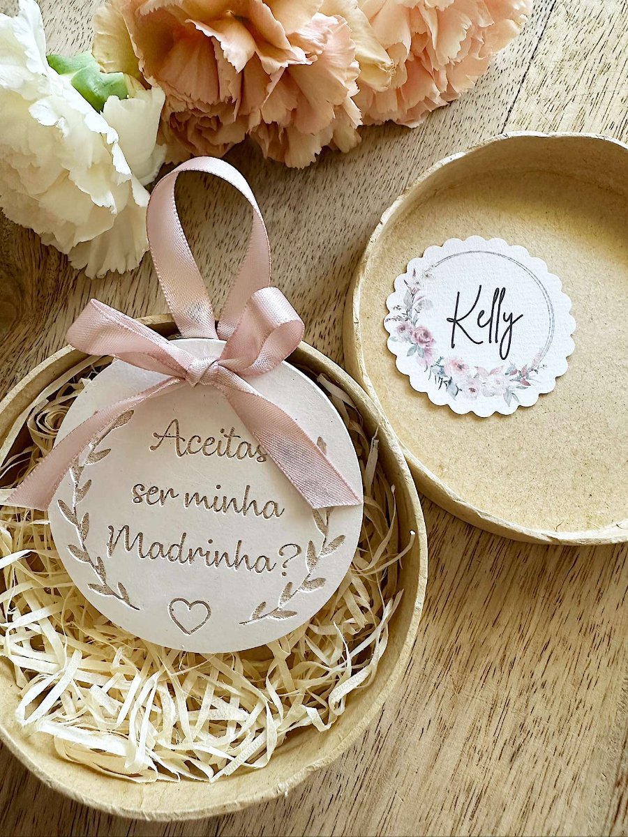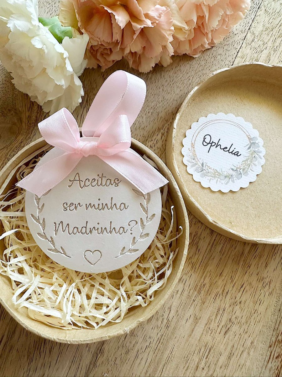Surpreenda a futura madrinha com um gesto simples mas cheio de emoção: um convite especial que ficará guardado como recordação para toda a vida.