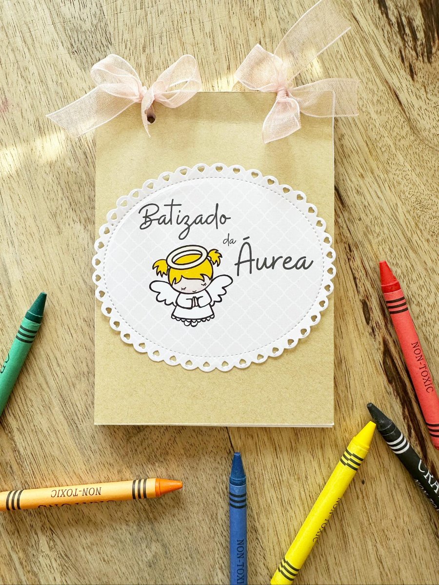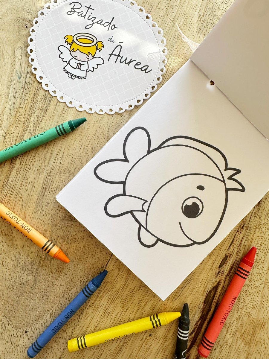 Livrinho de Colorir com lápis de cera e mini Tubo de bolinhas de sabão!