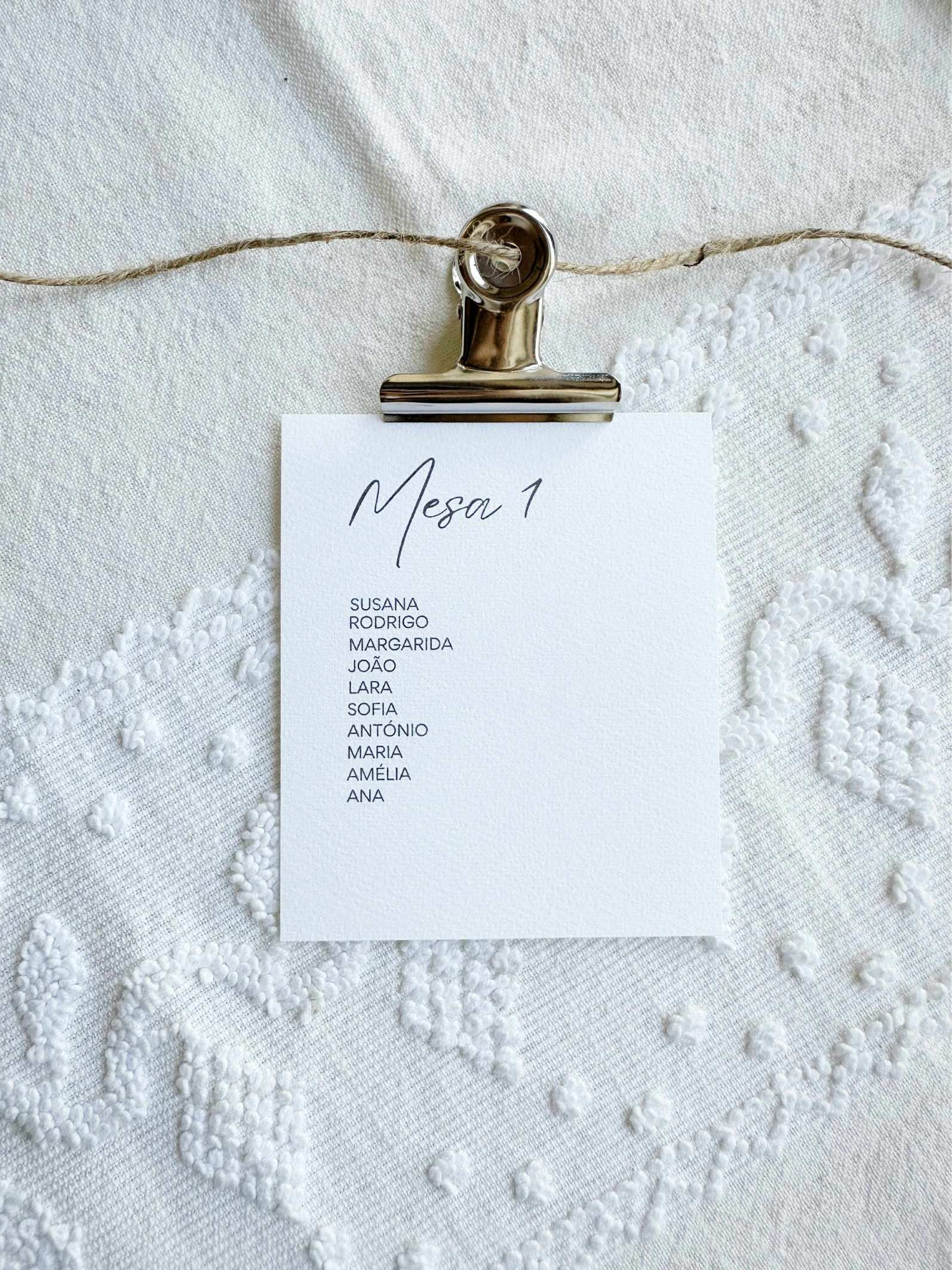 Este marcador funciona como um pequeno expositor na entrada que destaca o nome do convidado e a sua mesa de forma clara e elegante.