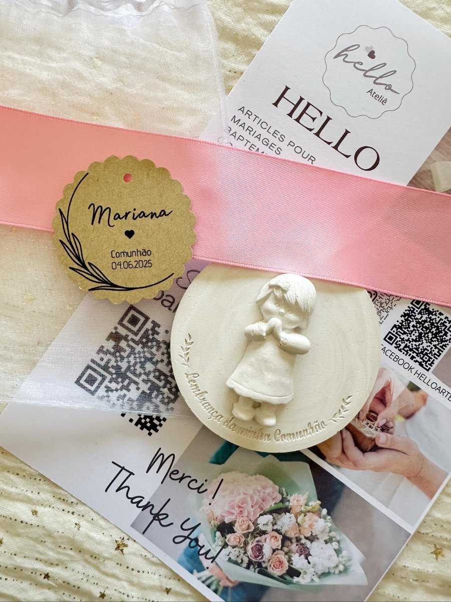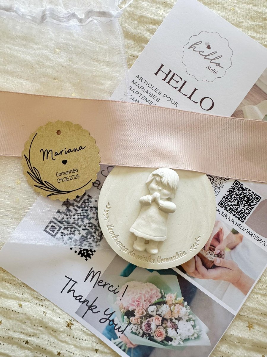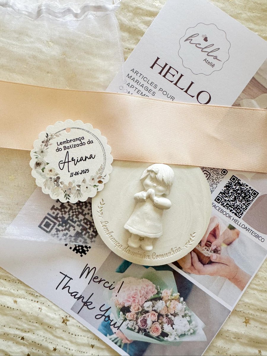 Pensada para marcar este momento tão especial, esta medalha combina simbolismo religioso, ternura e um toque artesanal que encanta quem recebe.