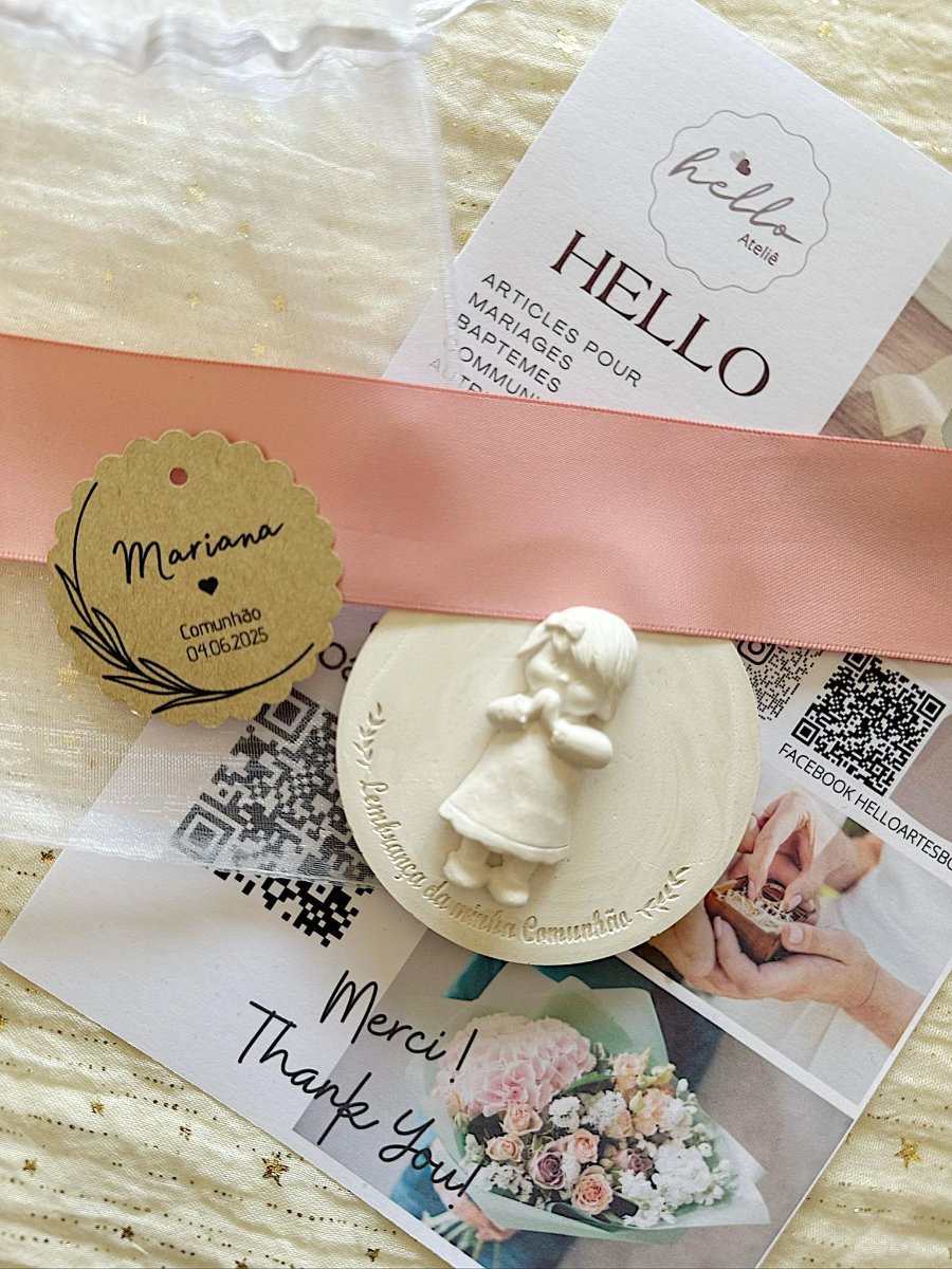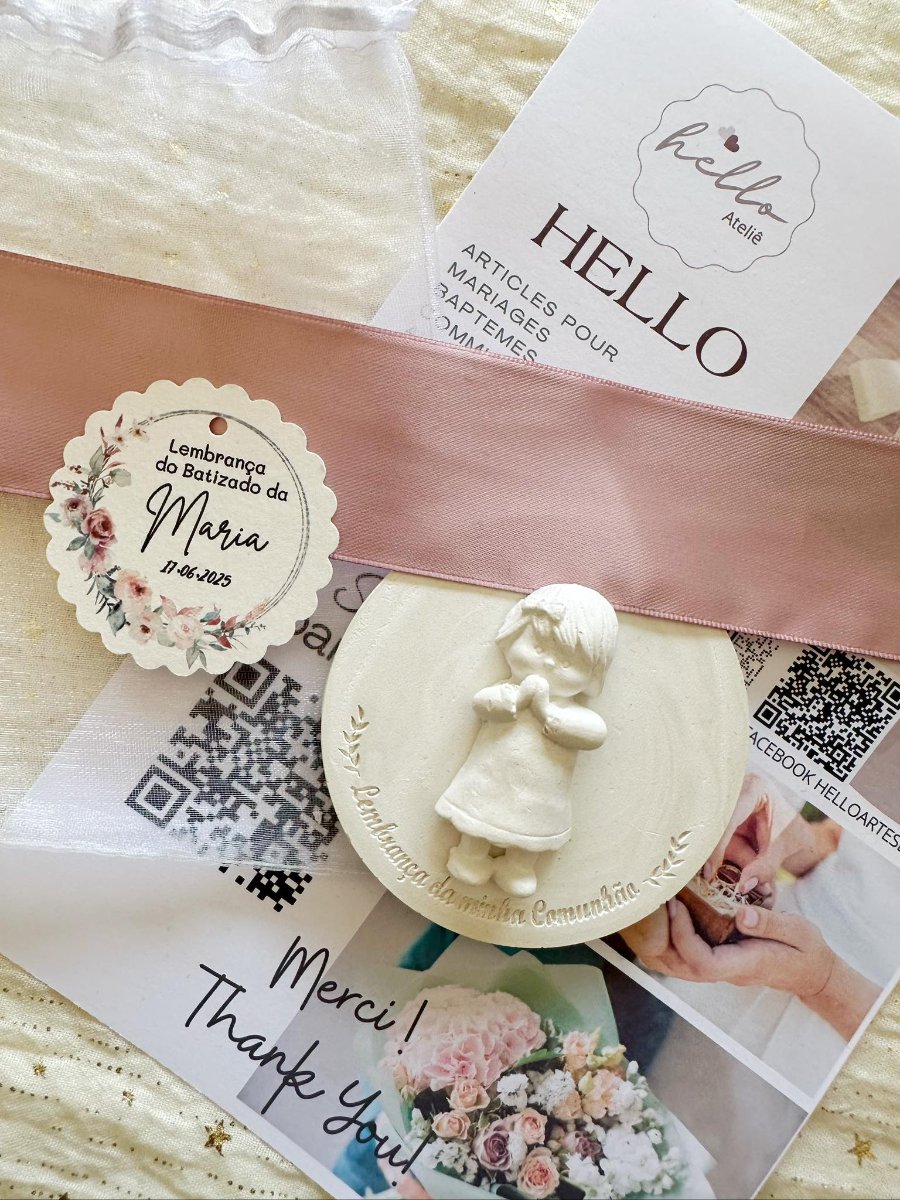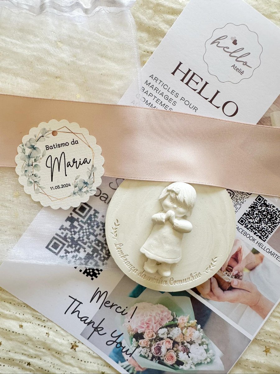Pensada para marcar este momento tão especial, esta medalha combina simbolismo religioso, ternura e um toque artesanal que encanta quem recebe.