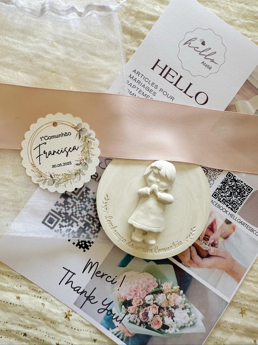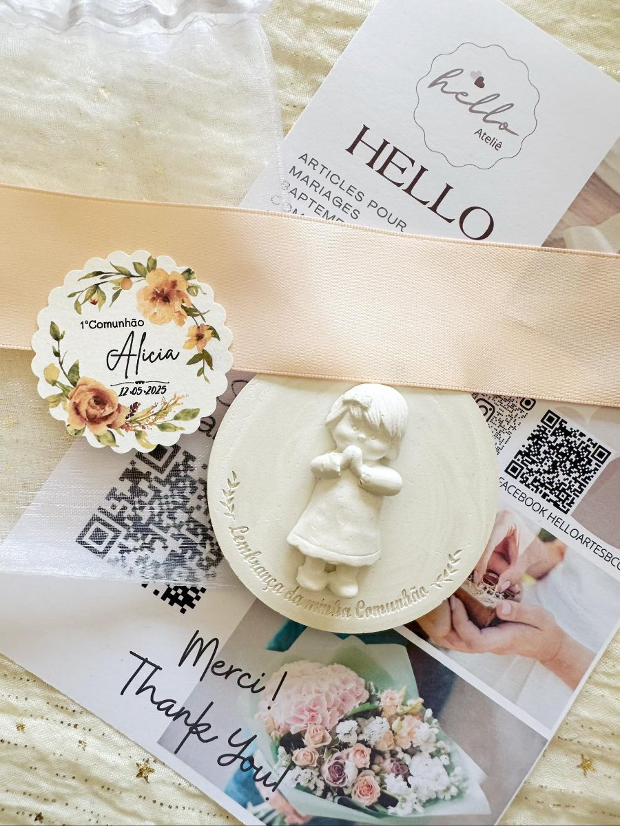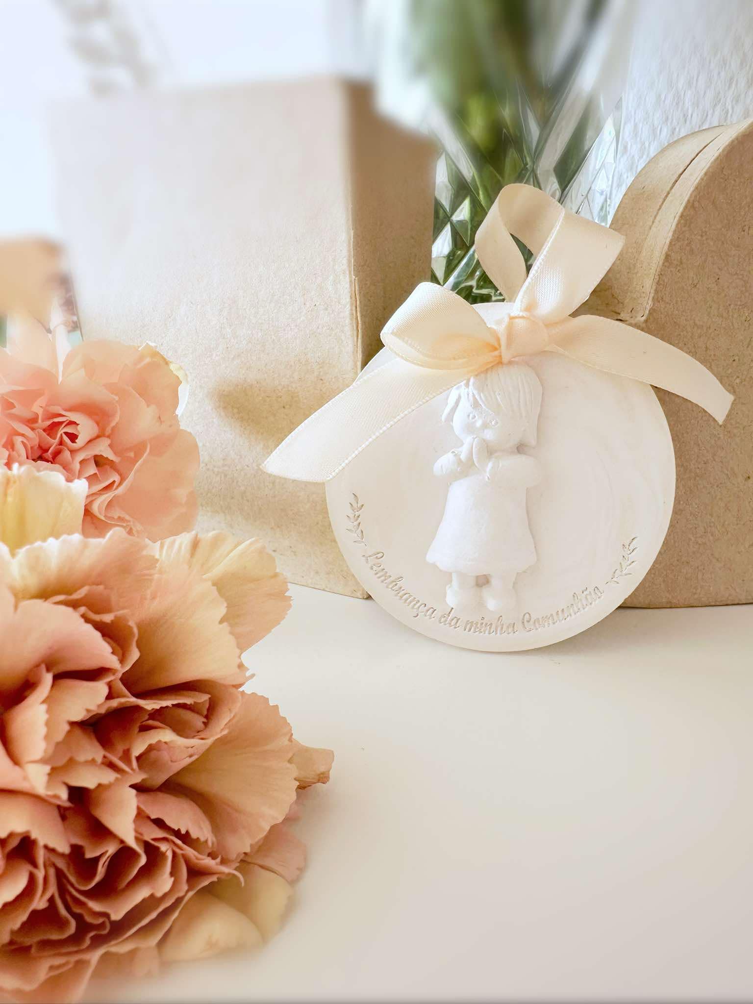 Celebra a sua Comunhão com esta lembrança em Gesso Perfumado – com uma Menina a Rezar!