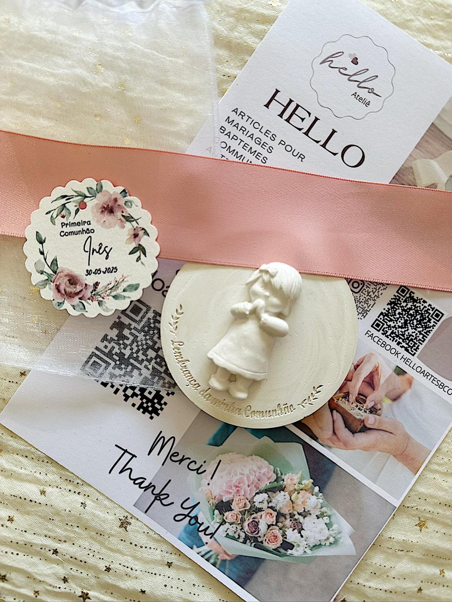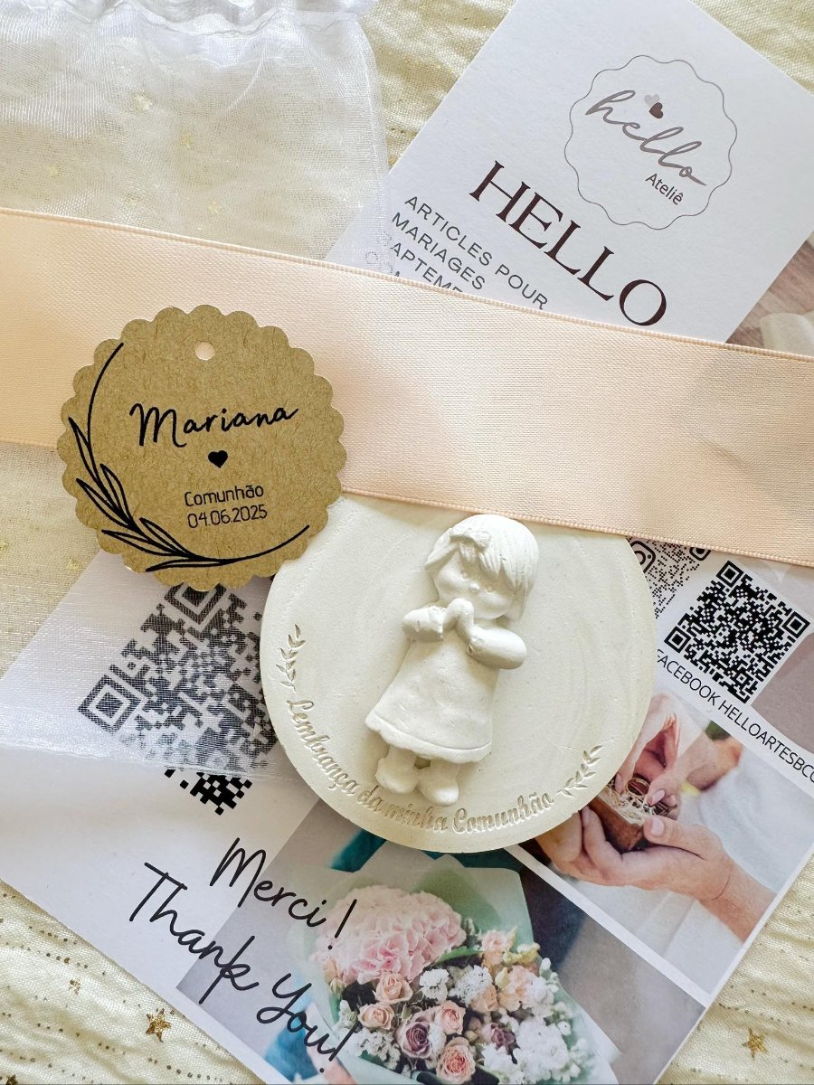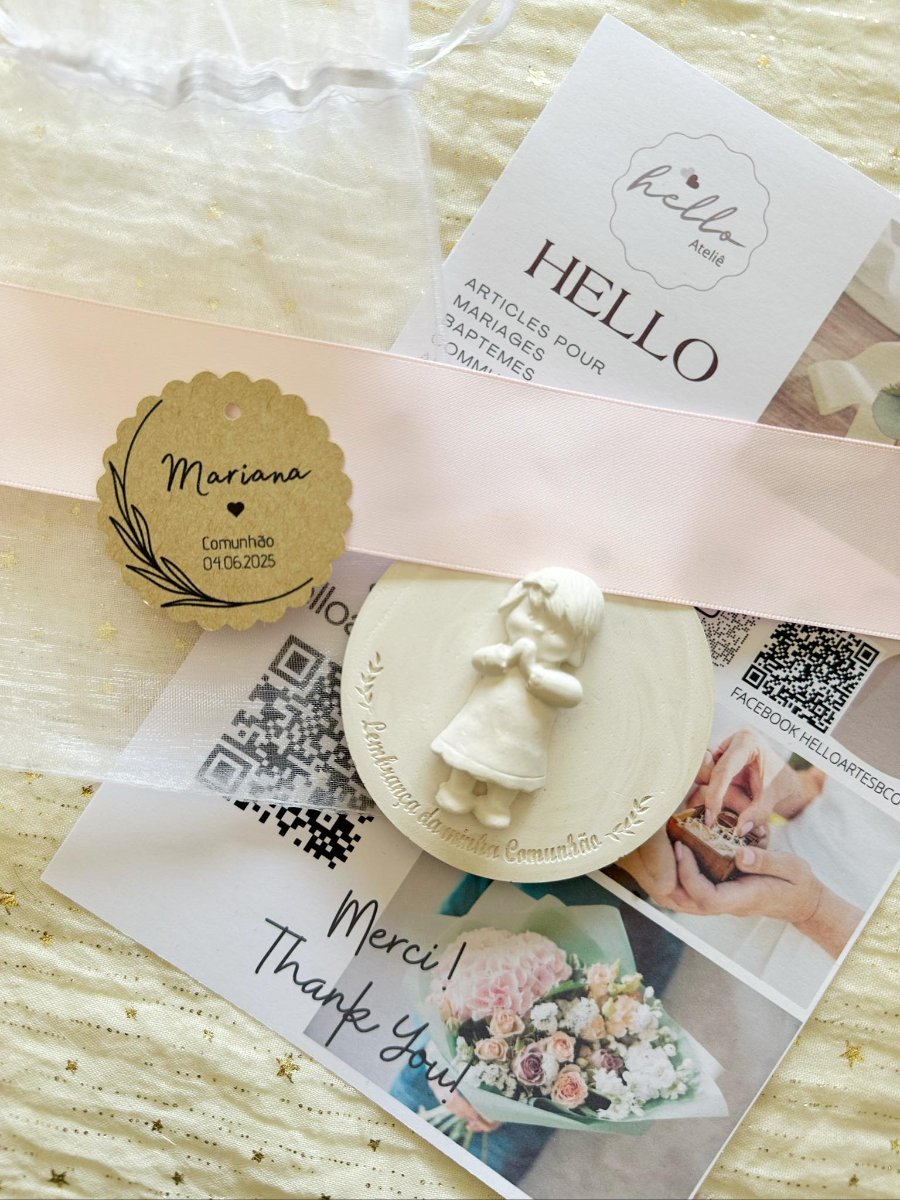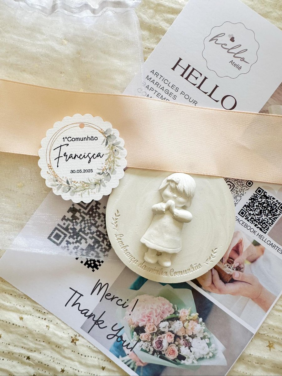 Celebra a sua Comunhão com esta lembrança em Gesso Perfumado – com uma Menina a Rezar!