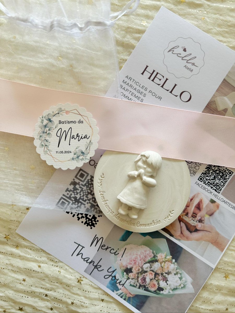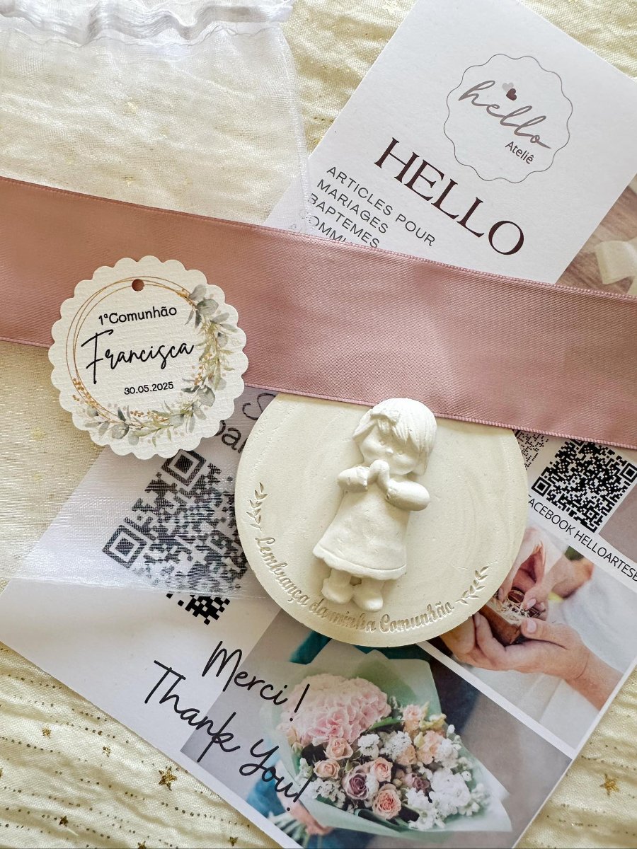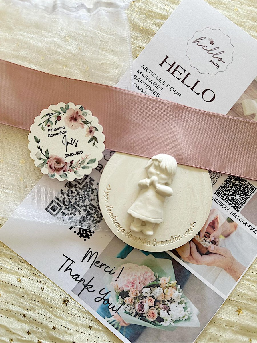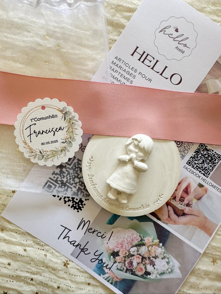 Esta Lembrança foi selecionada e criada especialmente pela HELLO só para sí! Criada à mão por nós, esta lembrança de Comunhão transborda um cheirinho a Talco, que todos os seus convidados vão adorar!