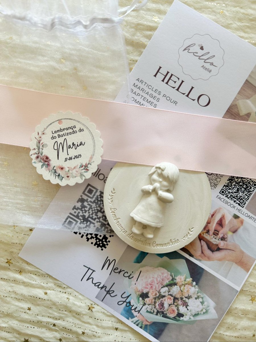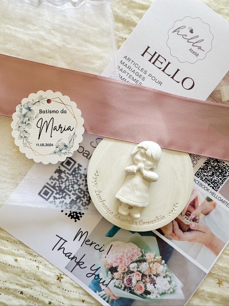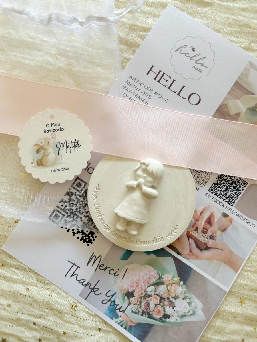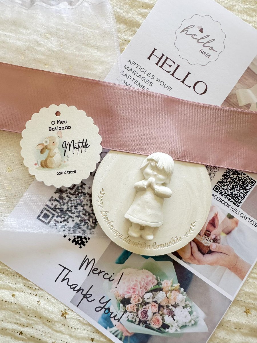 Esta Lembrança foi selecionada e criada especialmente pela HELLO só para sí! Criada à mão por nós, esta lembrança de Comunhão transborda um cheirinho a Talco, que todos os seus convidados vão adorar!