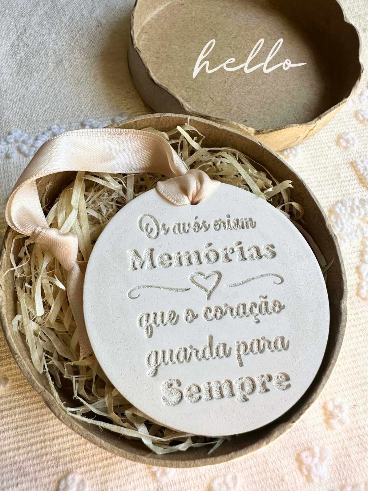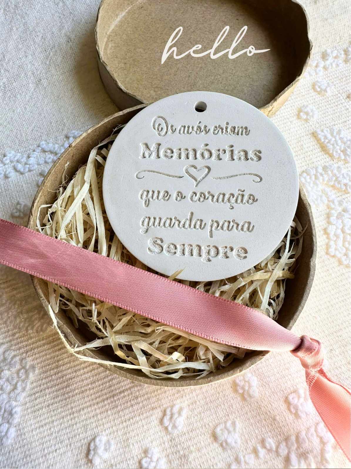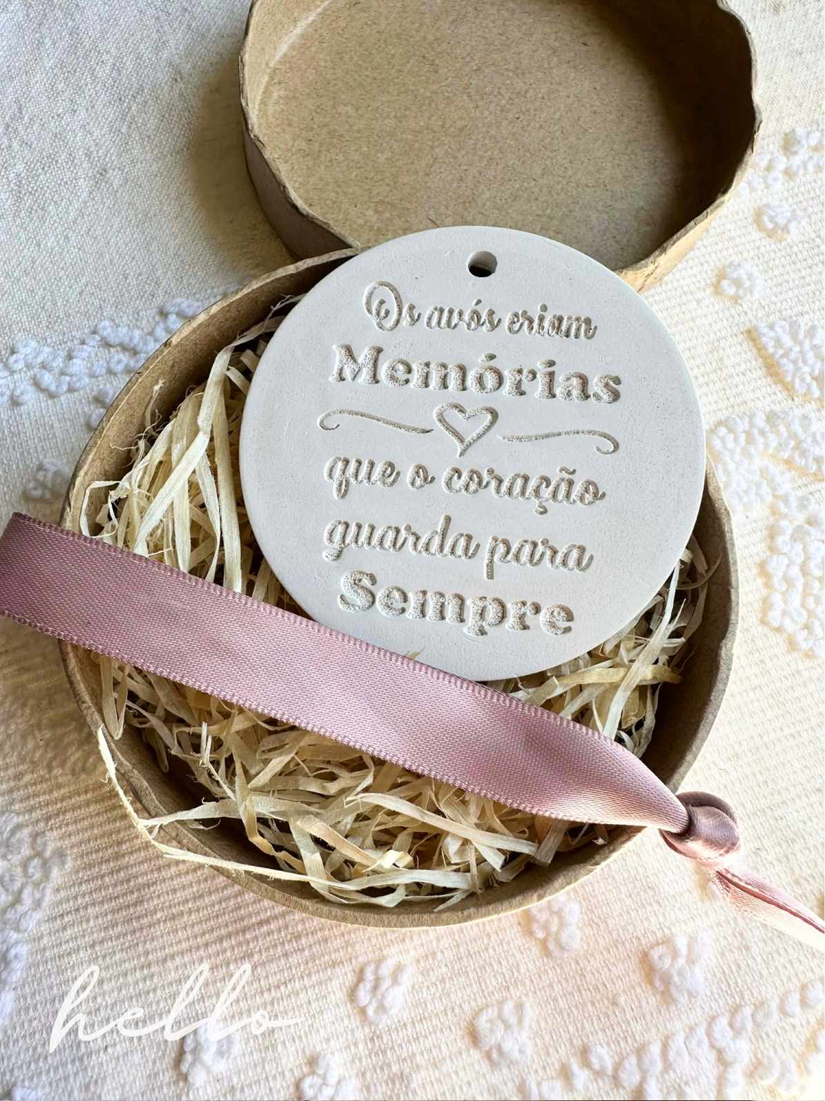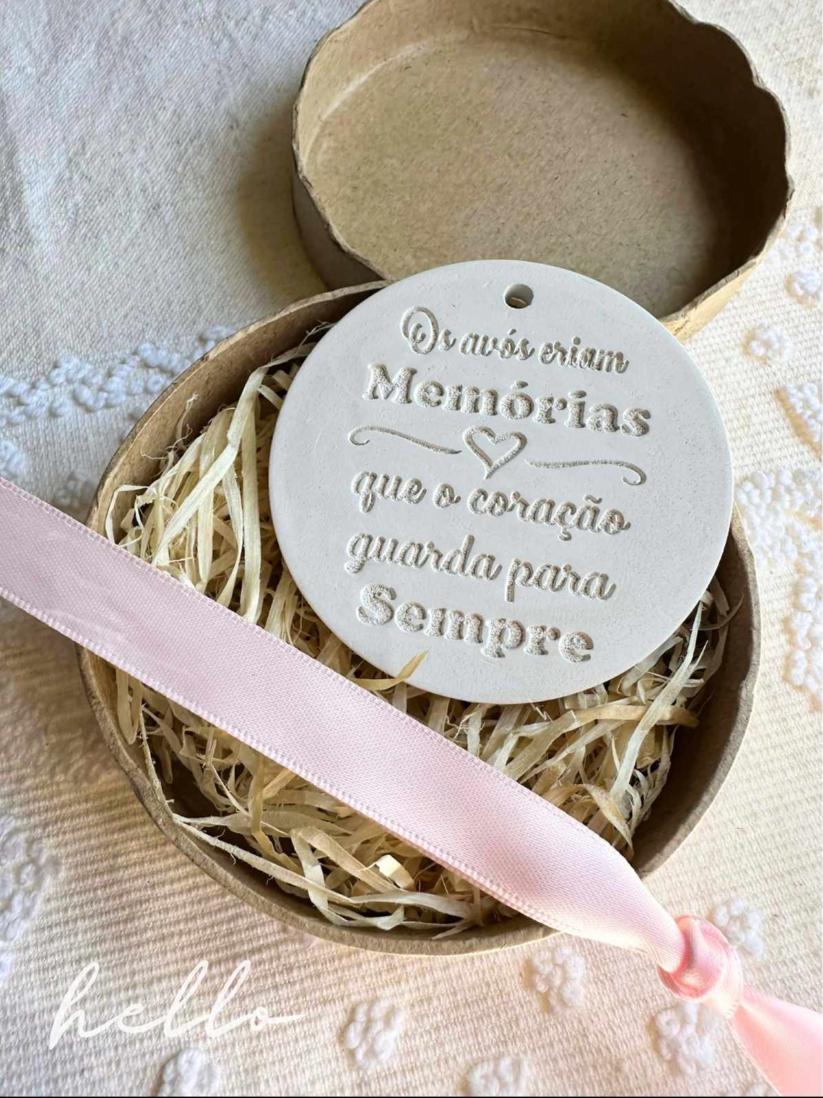 Um presente que combina design cuidadoso e um toque pessoal especial. Esta medalha em gesso perfumado com a mensagem “Os Avós criam memórias que o coração guarda para sempre” é um presente pensado especialmente para dizer “obrigada por estarem ao meu lado” de uma forma elegante e memorável.