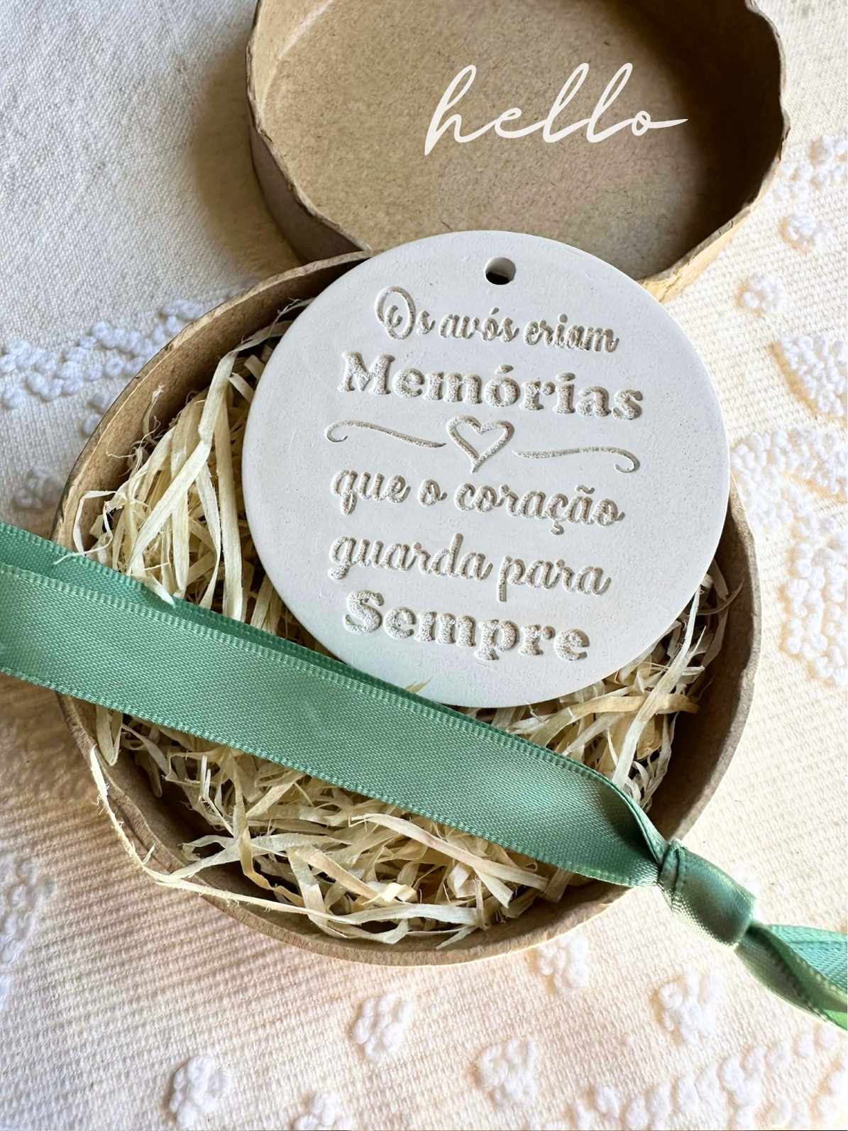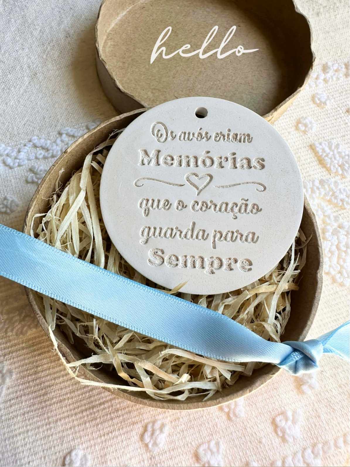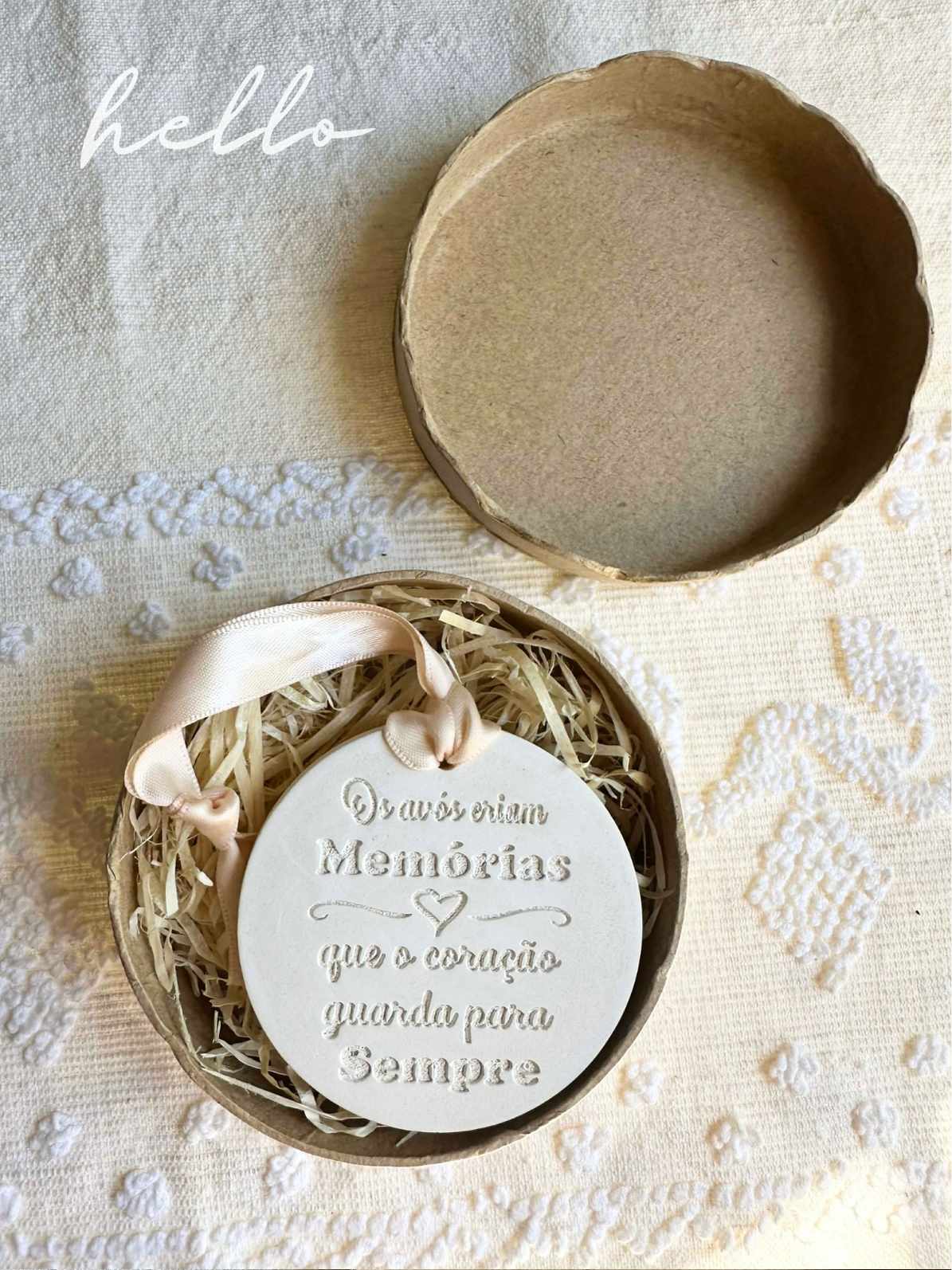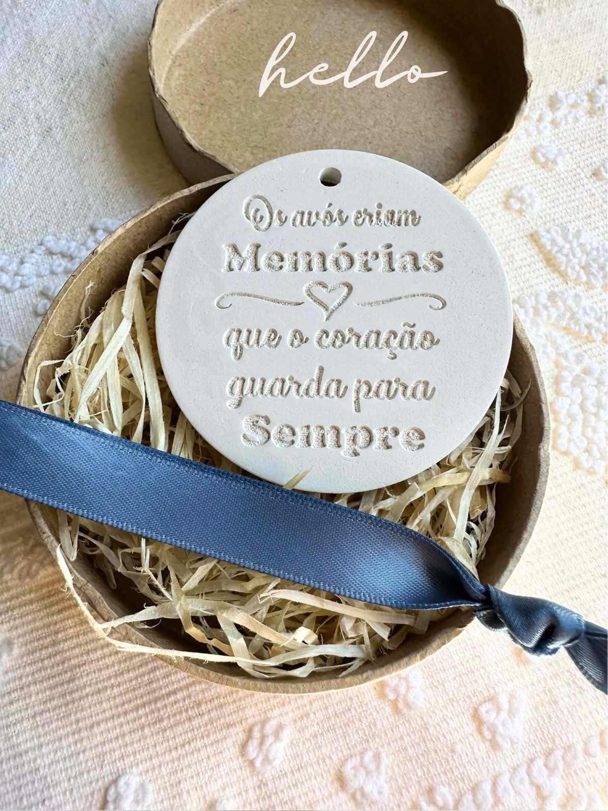 Um presente que combina design cuidadoso e um toque pessoal especial. Esta medalha em gesso perfumado com a mensagem “Os Avós criam memórias que o coração guarda para sempre” é um presente pensado especialmente para dizer “obrigada por estarem ao meu lado” de uma forma elegante e memorável.
