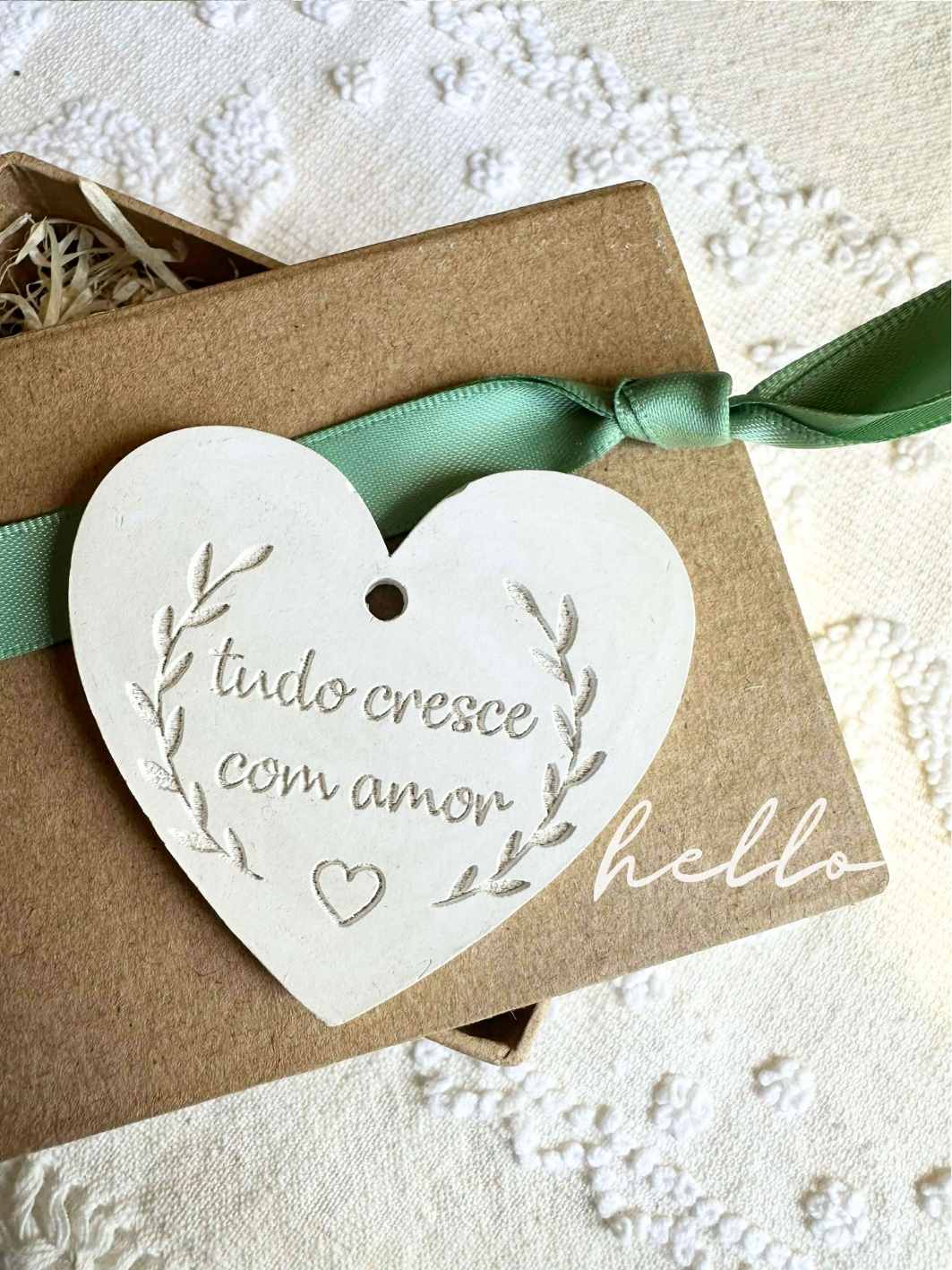 Surpreende alguém especial com esta delicada medalha em gesso perfumado “Tudo cresce com Amor”, um presente cheio de significado, carinho e elegância.