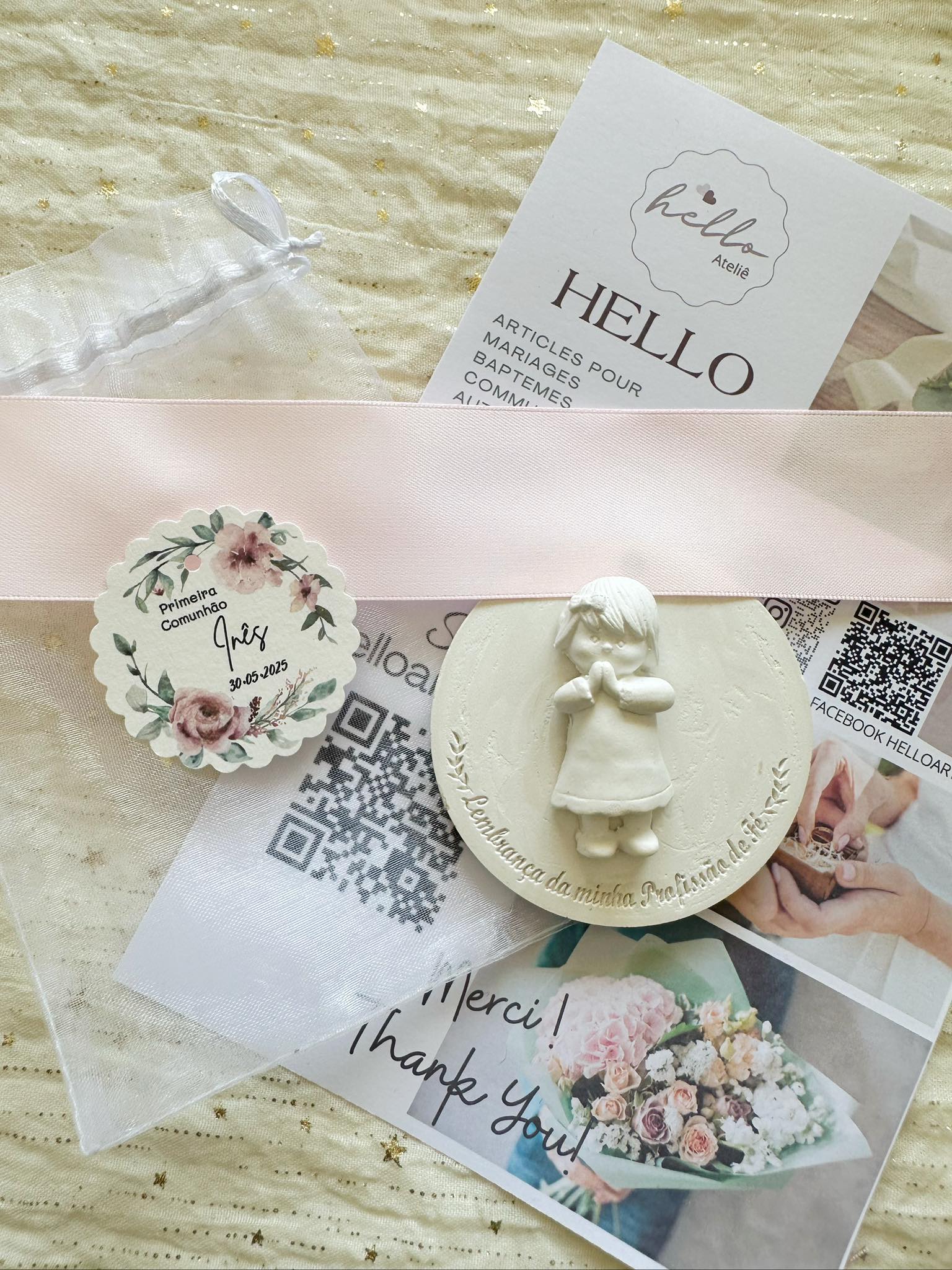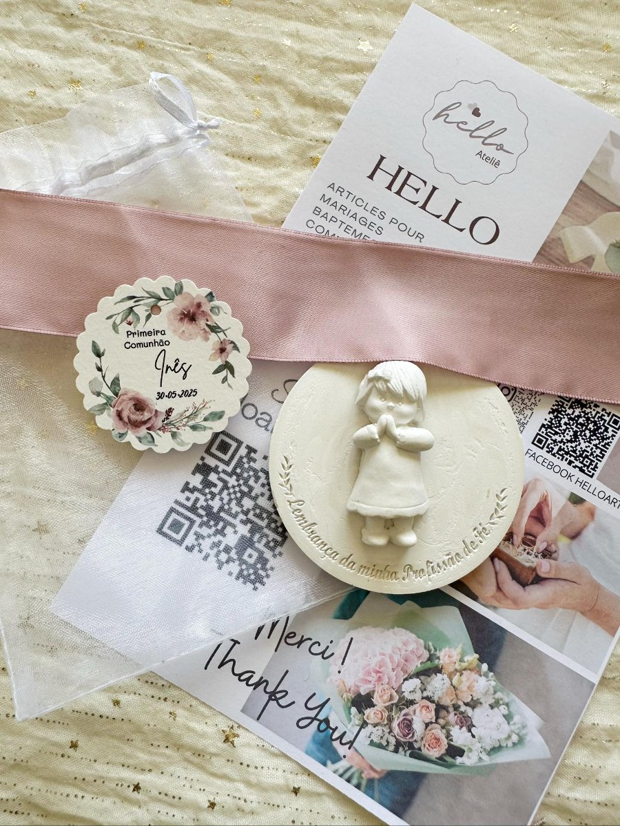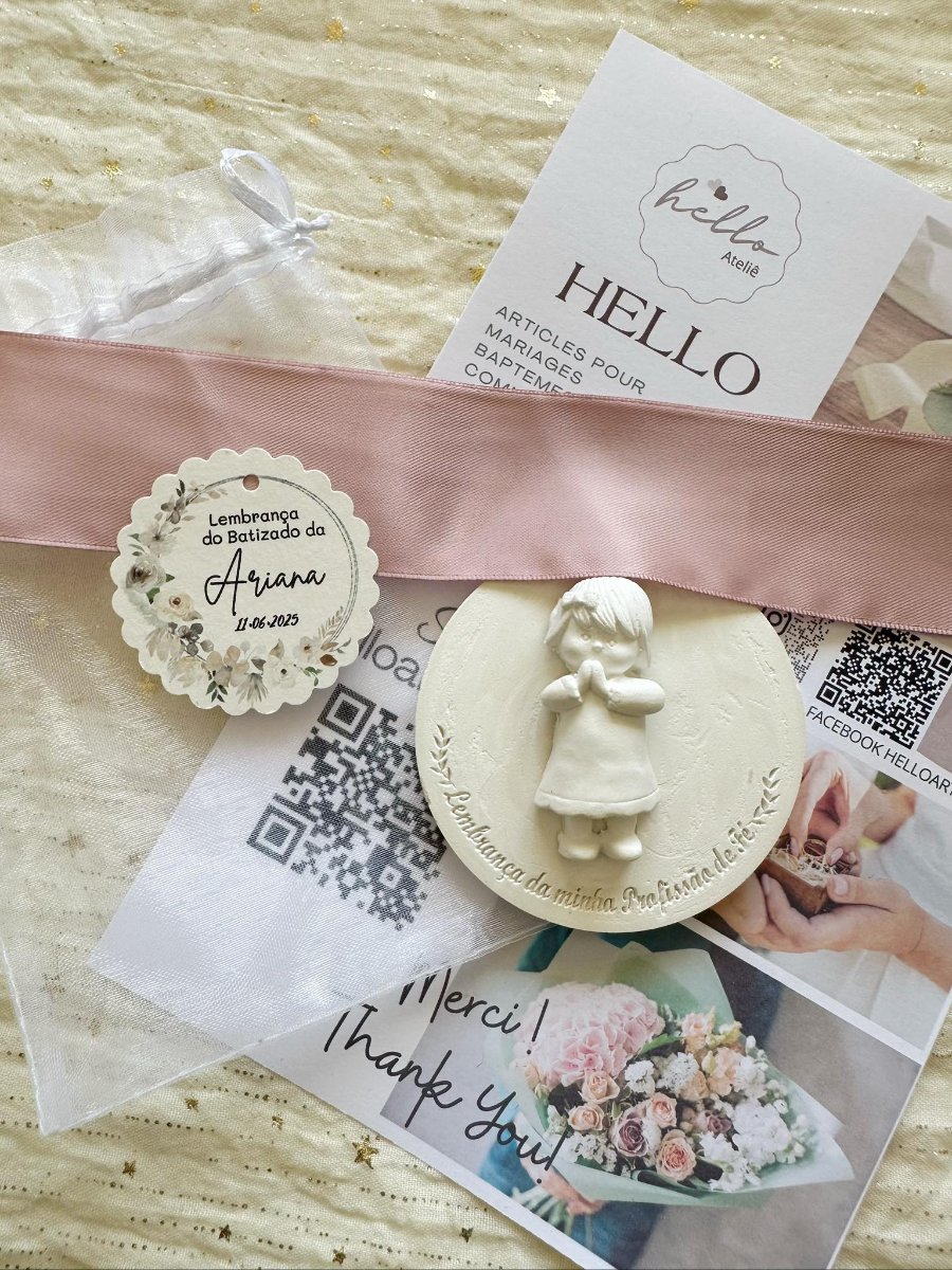 Esta Lembrança foi selecionada e criada especialmente pela HELLO só para sí! Criada à mão por nós, esta lembrança de Profissão de Fé transborda um cheirinho a Talco, que todos os seus convidados vão adorar!