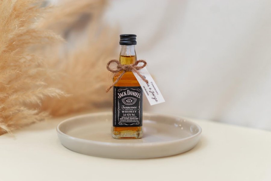 Adiciona um toque especial e sofisticado ao teu casamento com esta Lembrança de casamento – Mini Garrafa de Jack Daniels!