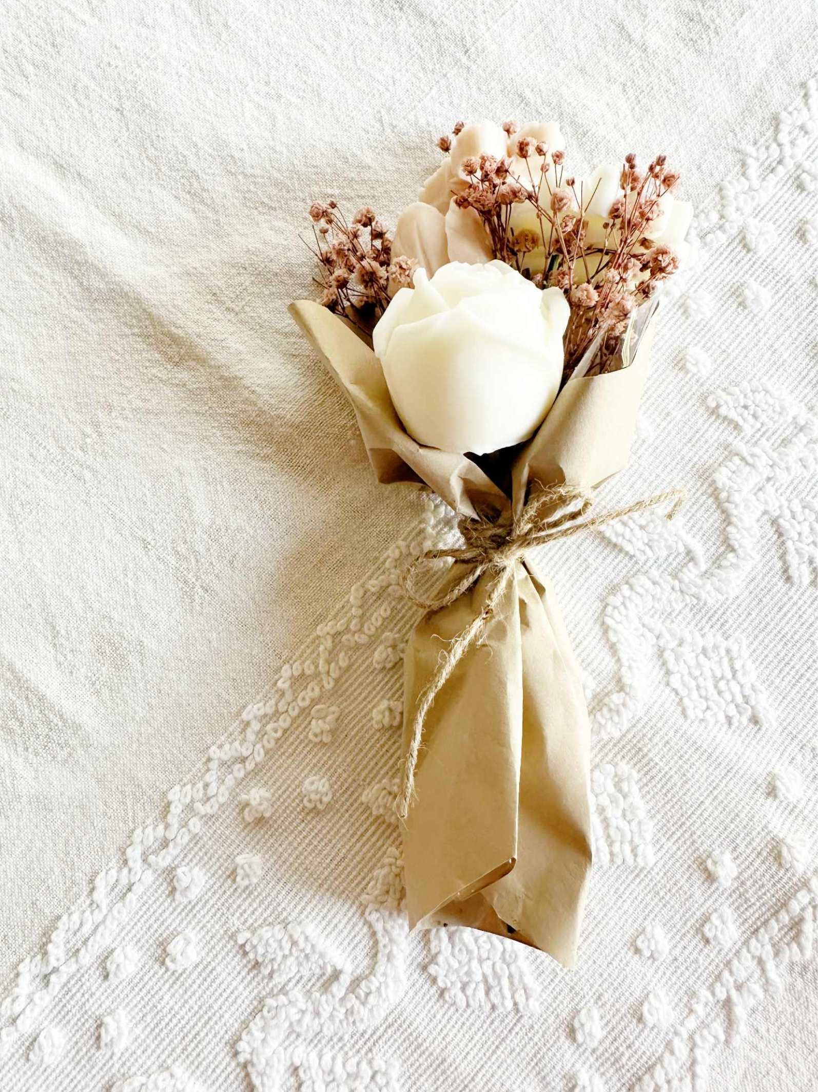 Produzido com flores em cera artesanal, este mini ramo destaca-se pelo seu aspeto realista e pela sua resistência, sendo perfeito para quem procura uma alternativa duradoura às flores naturais.