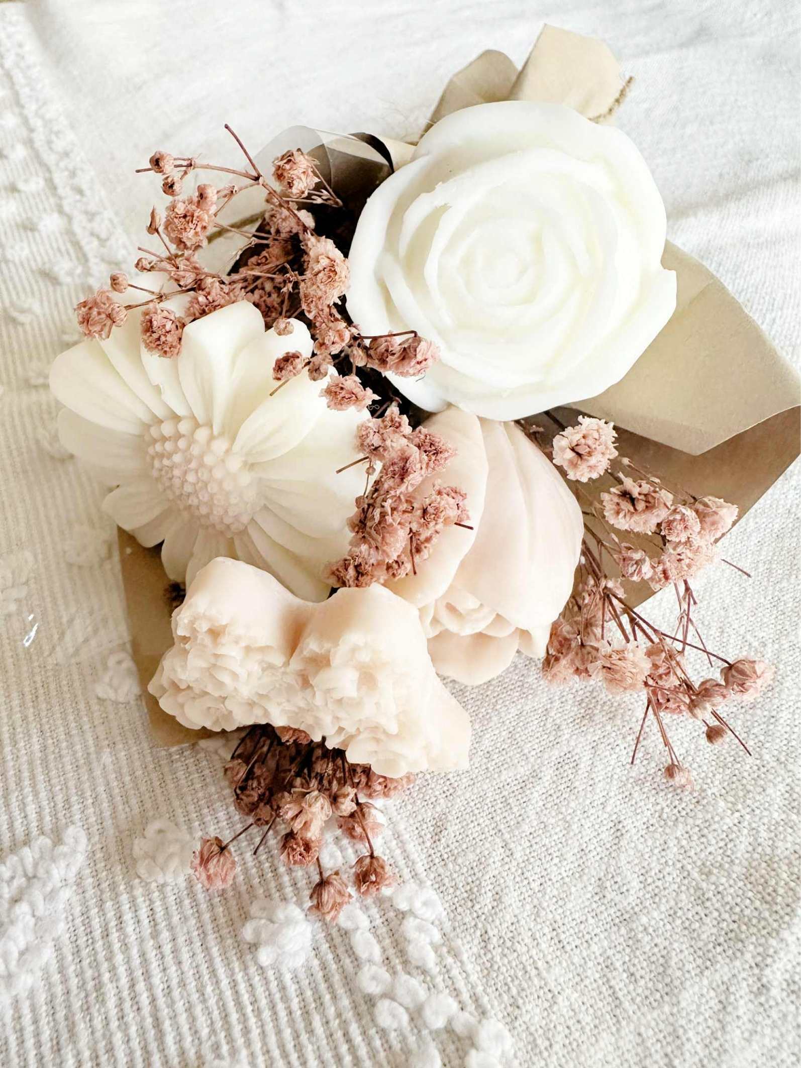 O Mini Ramo com Flores de Cera é uma peça decorativa encantadora que combina o charme das flores com a durabilidade da cera perfumada — perfeito para completar qualquer ambiente com estilo e personalidade.