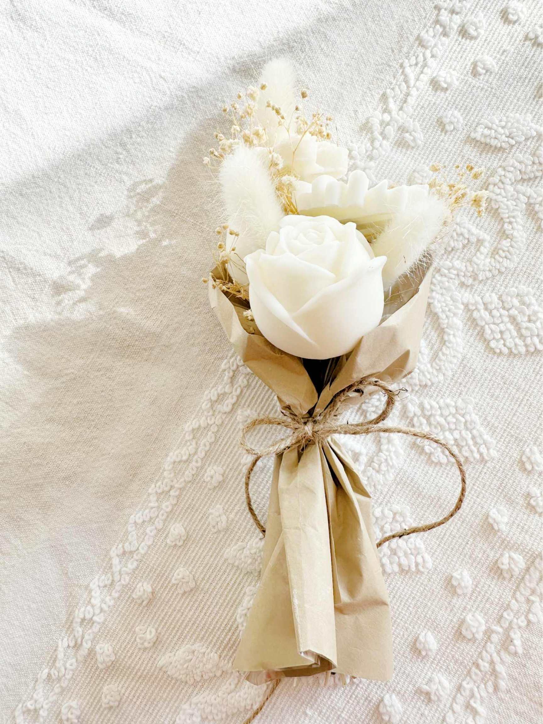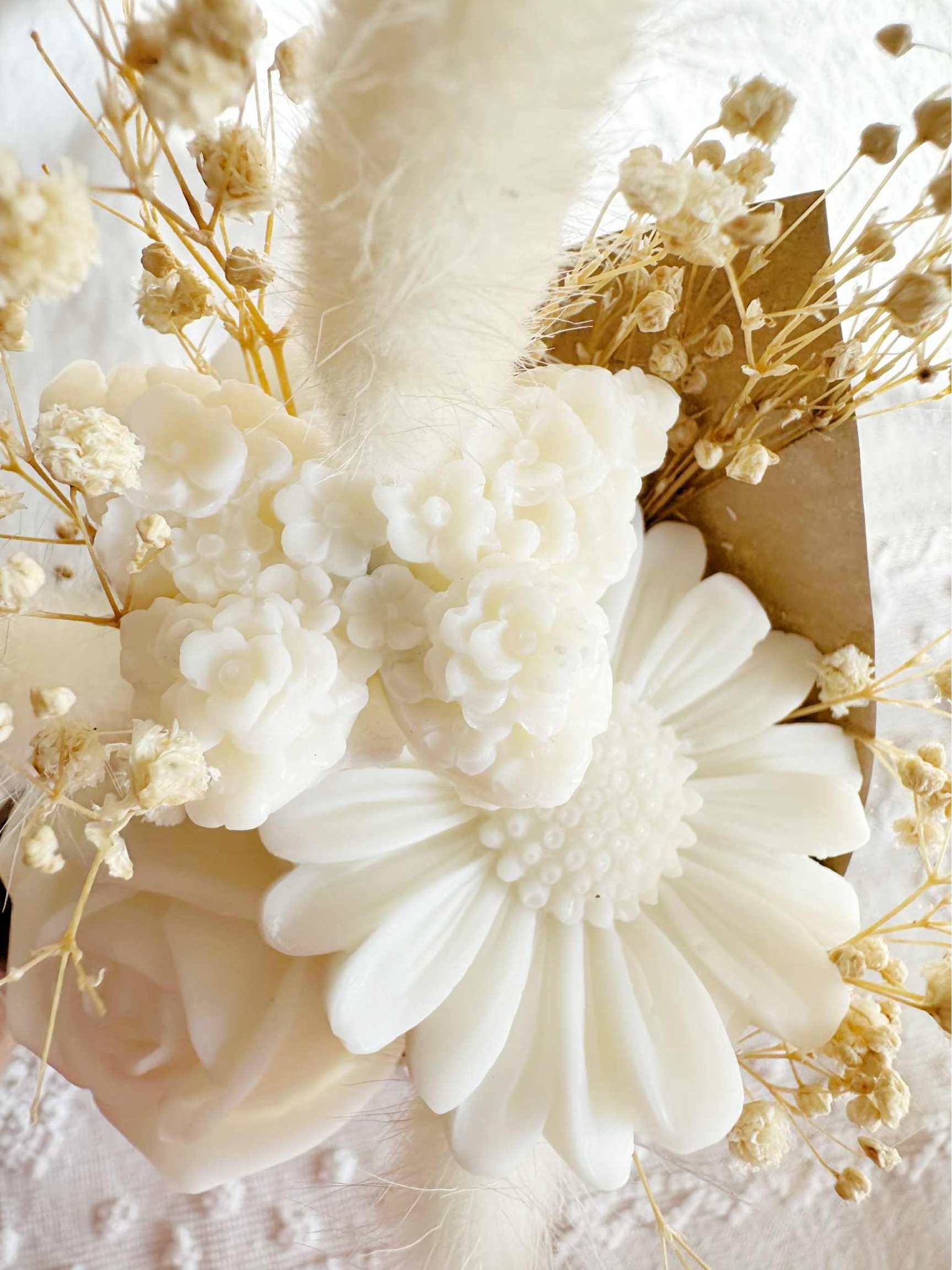 Mini Ramo com Flores de Cera Branco. O Presente Artesanal Delicado e Duradouro!
