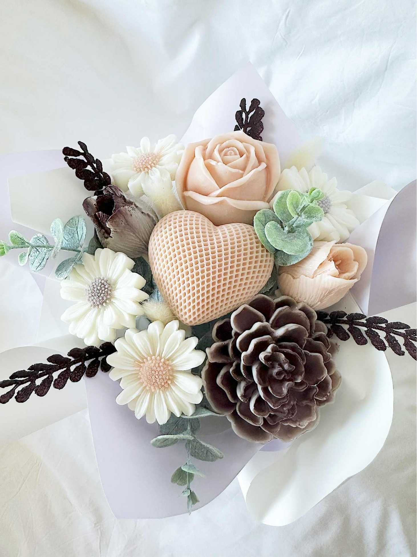 O Ramo Valentina com flores de cera é um arranjo delicado e elegante, perfeito para oferecer em momentos especiais ou para decorar qualquer espaço com um toque sofisticado. Inspirado na beleza intemporal das flores de cera, este ramo artesanal transmite carinho, amor e emoção.